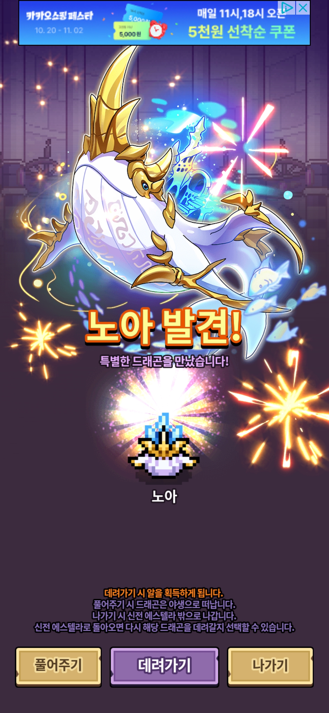 진입해서 싸우다 드디어 첫 노아를 얻었습니다….