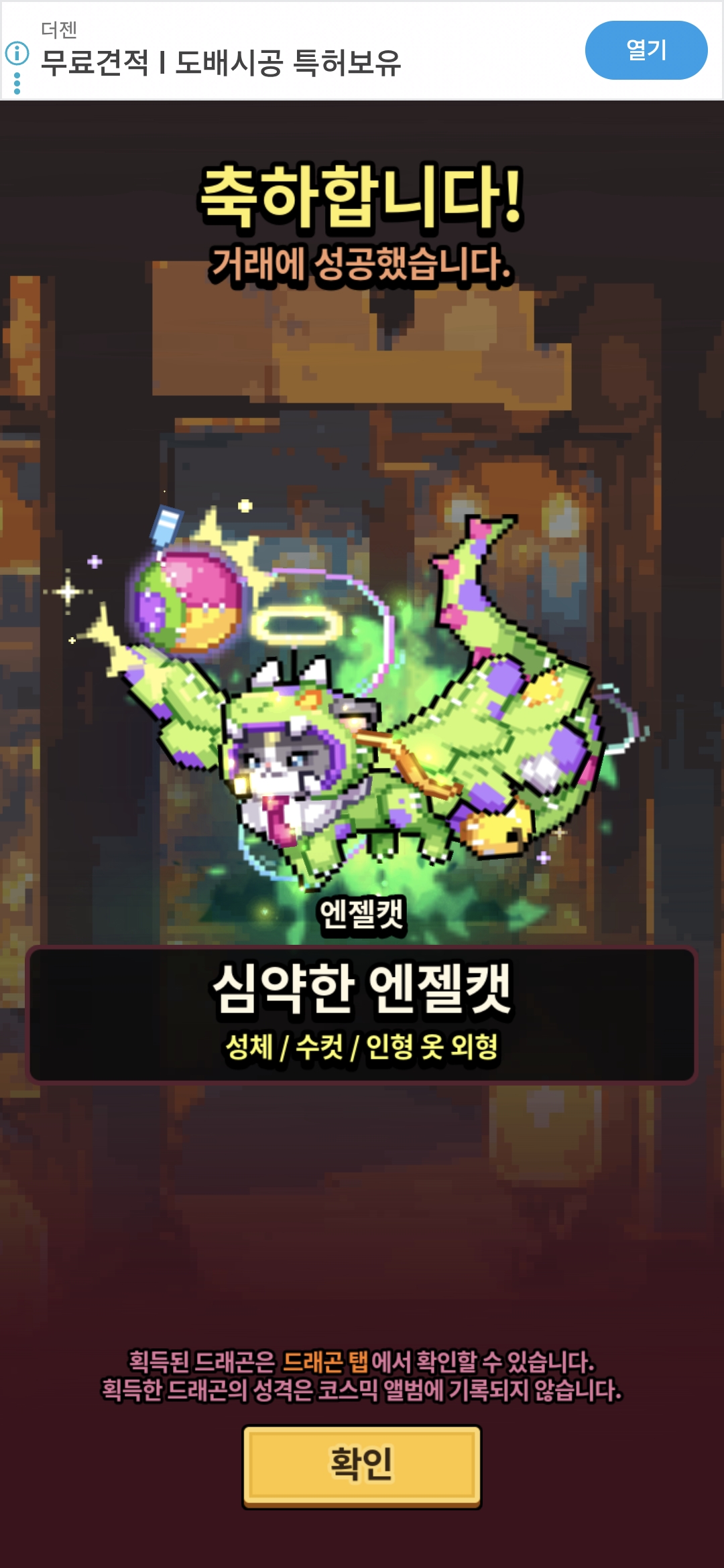 지난 깨비장터에 드래곤을 사기만 하고 깹장이 끝날때 까지 수령을 안했는데..