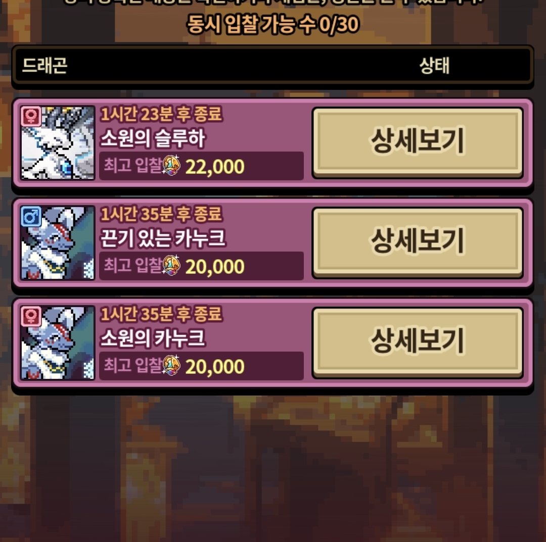 카누크 암수 1세대 1시간 30분 남았습니다 많관부~