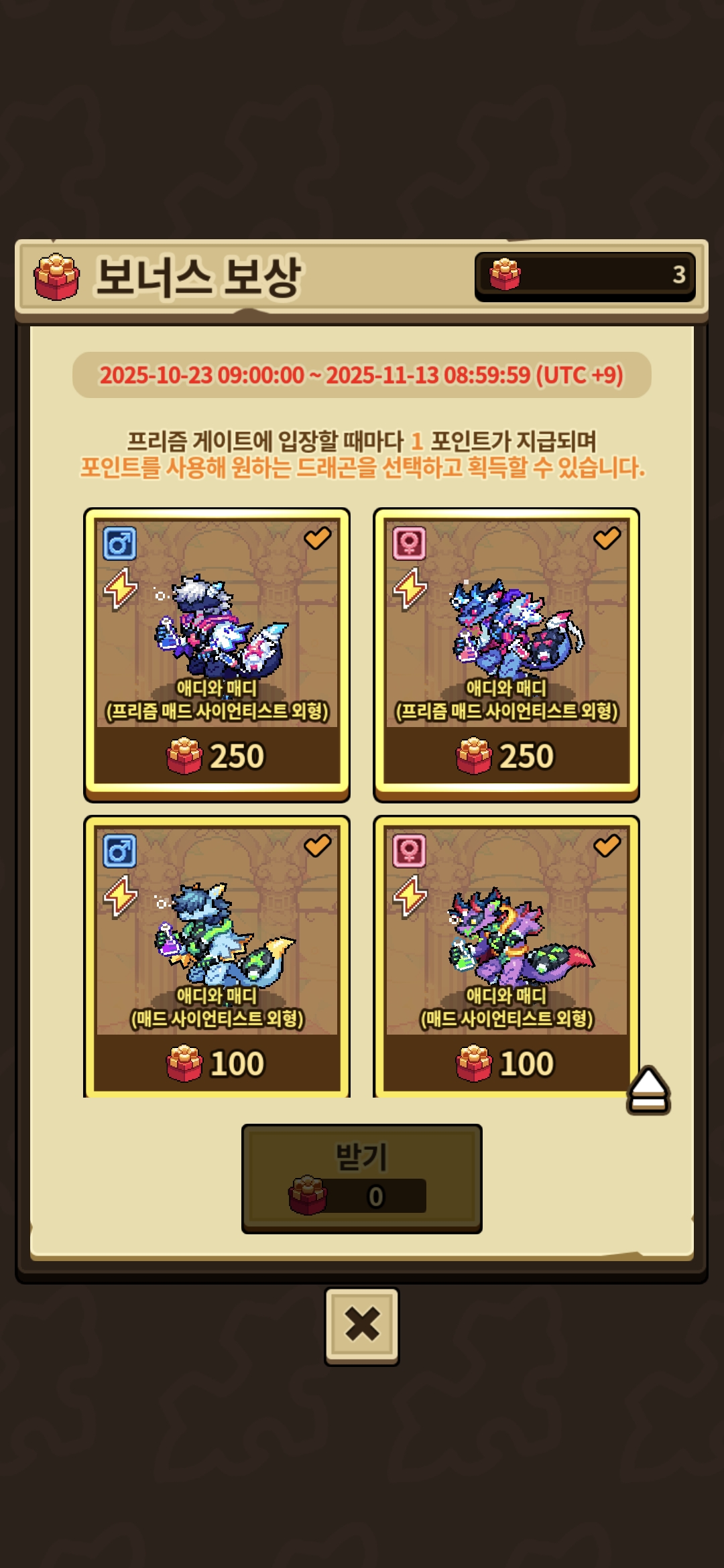 필요한 포인트 좀 낮춰주면 좋겠어요 한마리는 운좋게 뽑았지만 한마리는 천장 겨우 찍었네요…ㅠㅠ