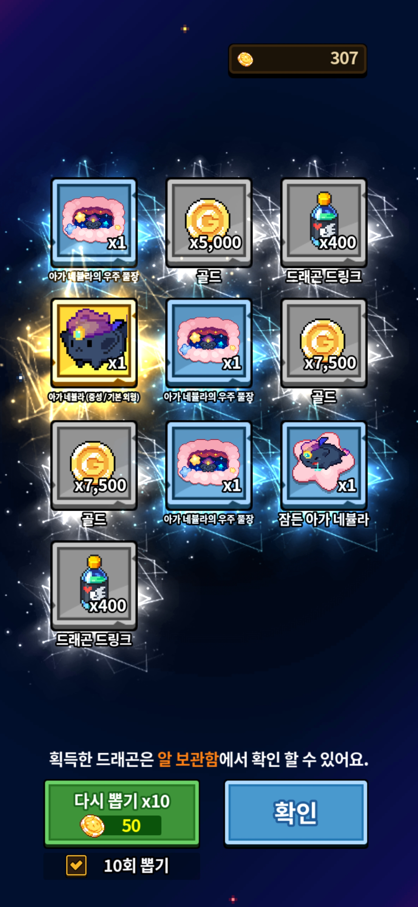 놀라서 사진은 하나밖에 못찍었지만 네뷸라 3번 뽑았습니다! 샤크곤은 안떴고 빌리지 템도 잘 못띄웠지만요..