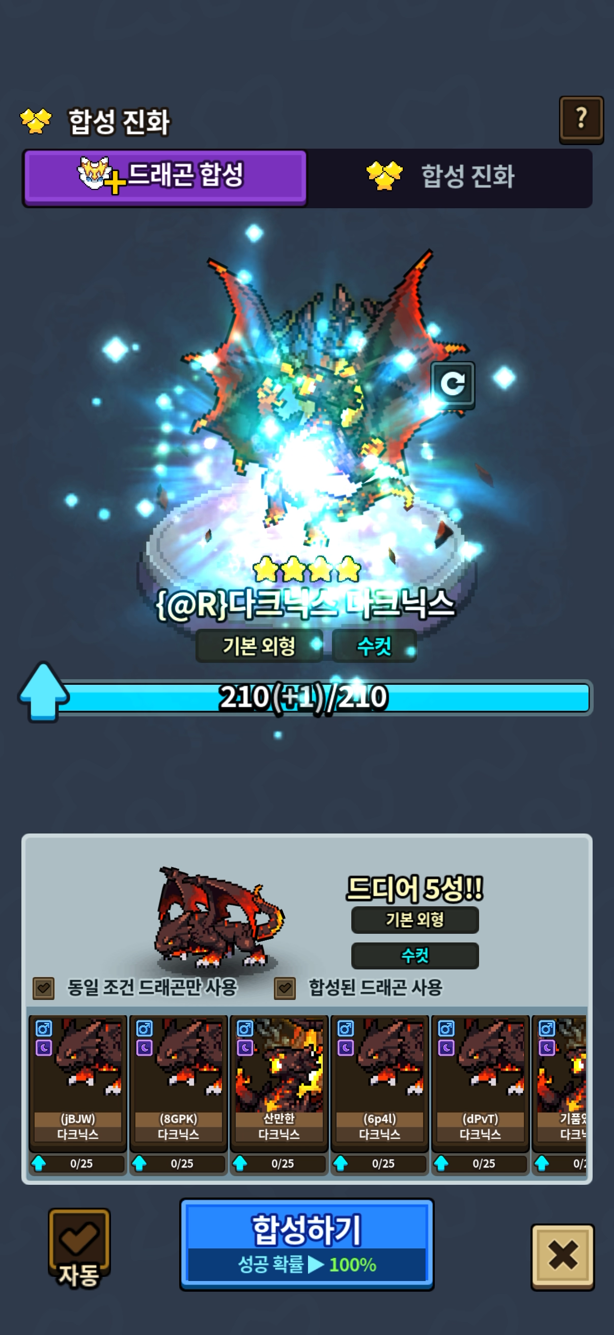 하이브로 다크닉스 합성 진화도 출시해주세요! 외형 선택 변경도 자유롭게..