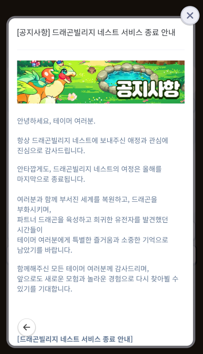 [드래곤빌리지 네스트 서비스 종료 안내]