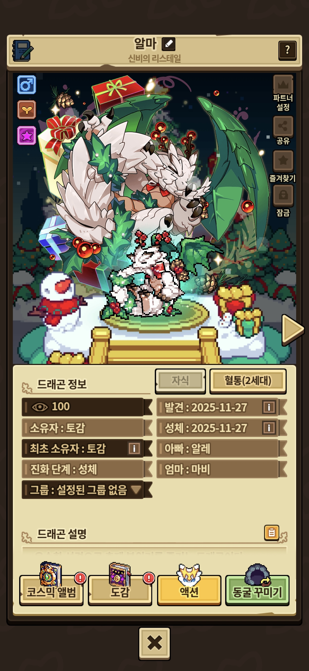 다정한 성격작을 했는데 해츨링 됐을 때 신비의 성격이 떴네요~