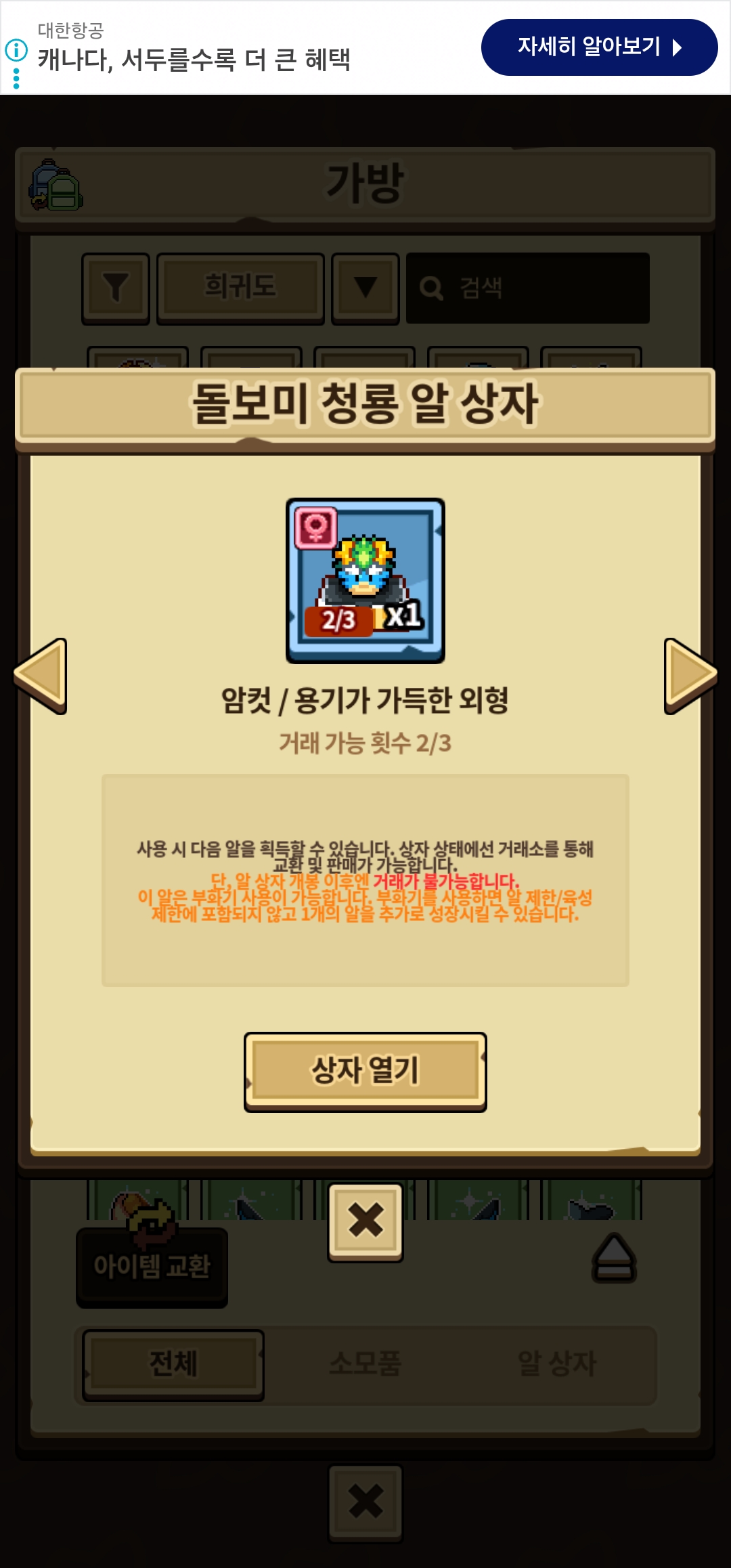 이 돌보미 청룡 무슨 알상자로 교환할 수 있을까요? 물론 에브리아는 제외하고요!