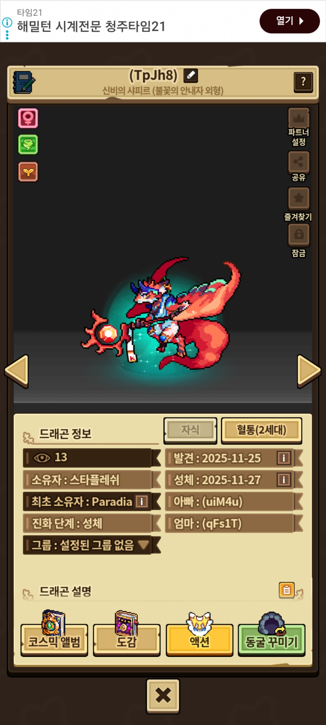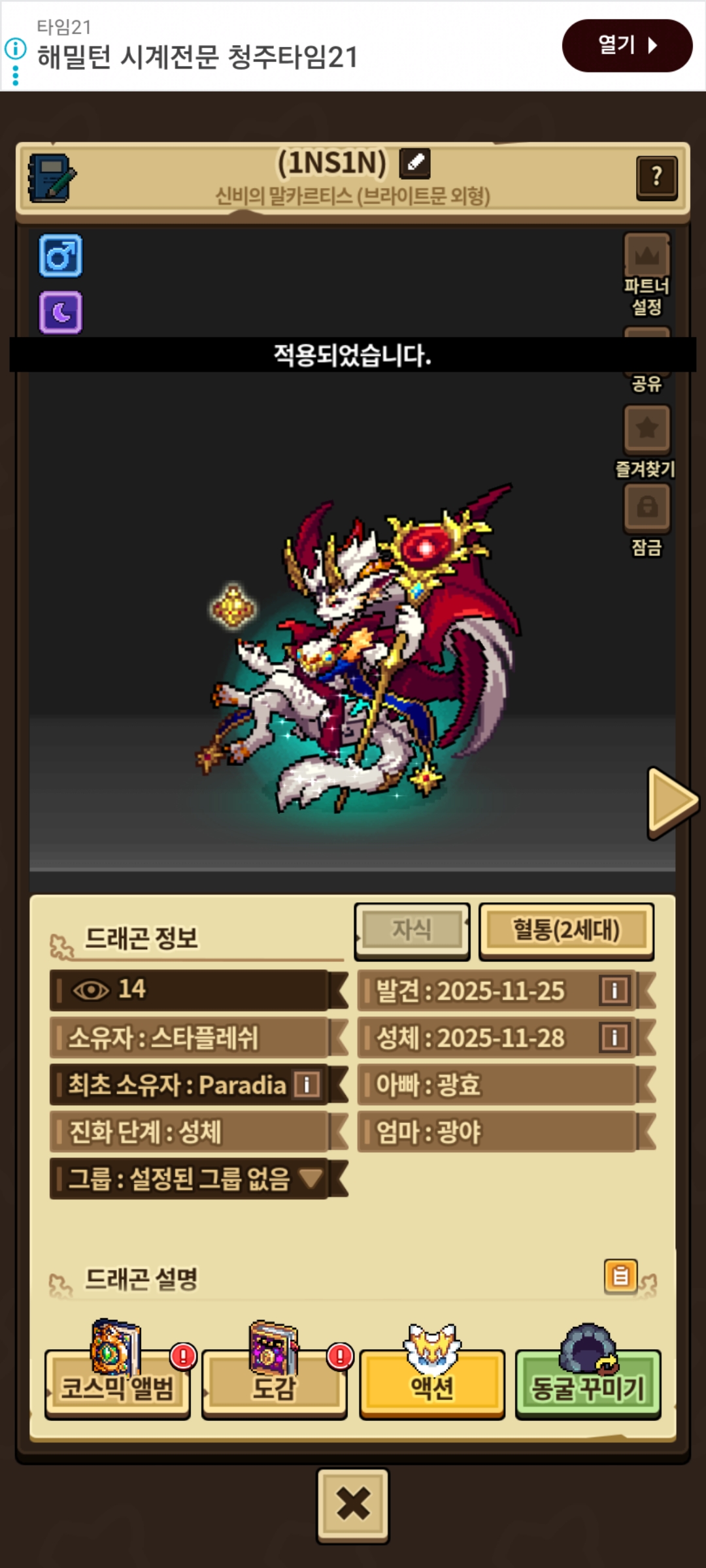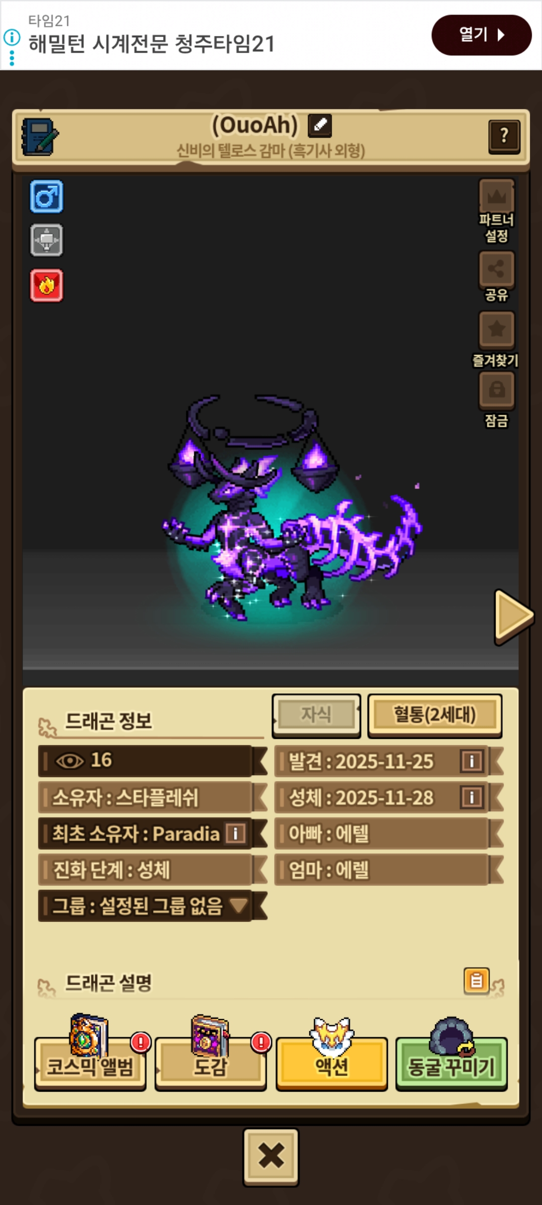 마침 코즈믹 도감작(외형) 중이어서 운좋게 볼수있었다.