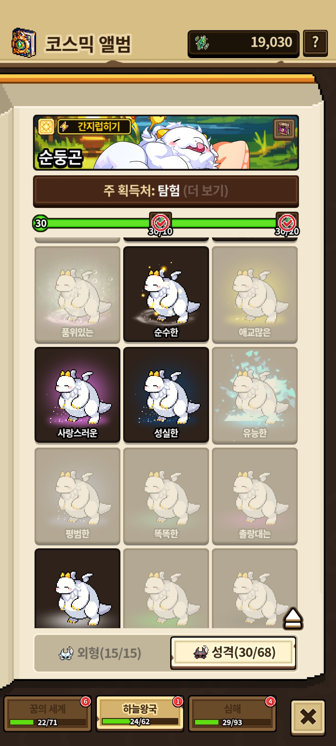 제가 순둥곤을 좋아해서 모든성격을 도전 하고 있는대 평범도 만들기 위해서 평범 성격 세밀라를 만들어서 찬란한 달빛보석으로 성격을 바꿨어요. 근데 지금 보니 도감에 표시안돼있내요 ㅠㅠ