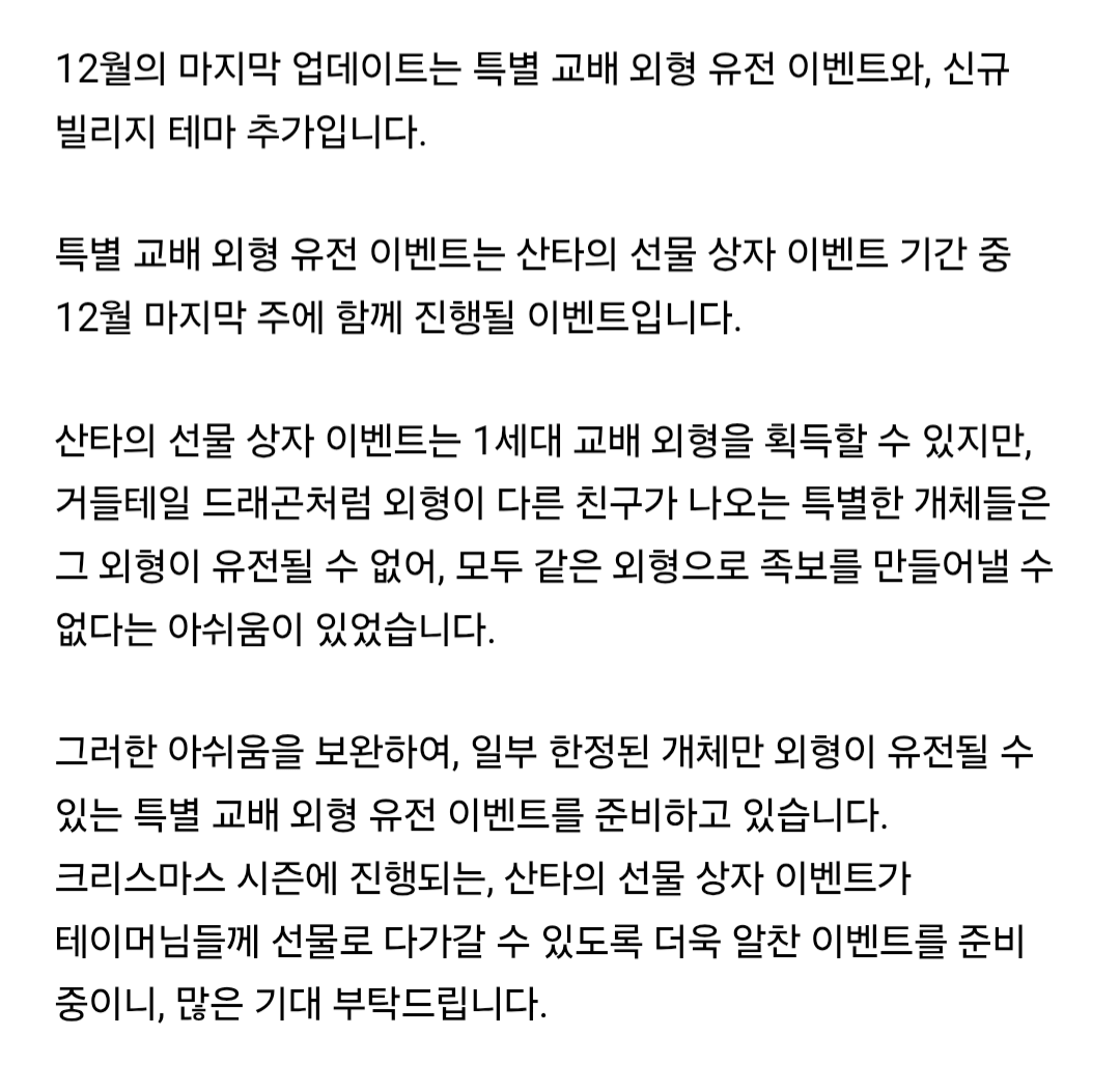 직전 11월 28일자 개발자 노트 중 마지막 문단의 내용