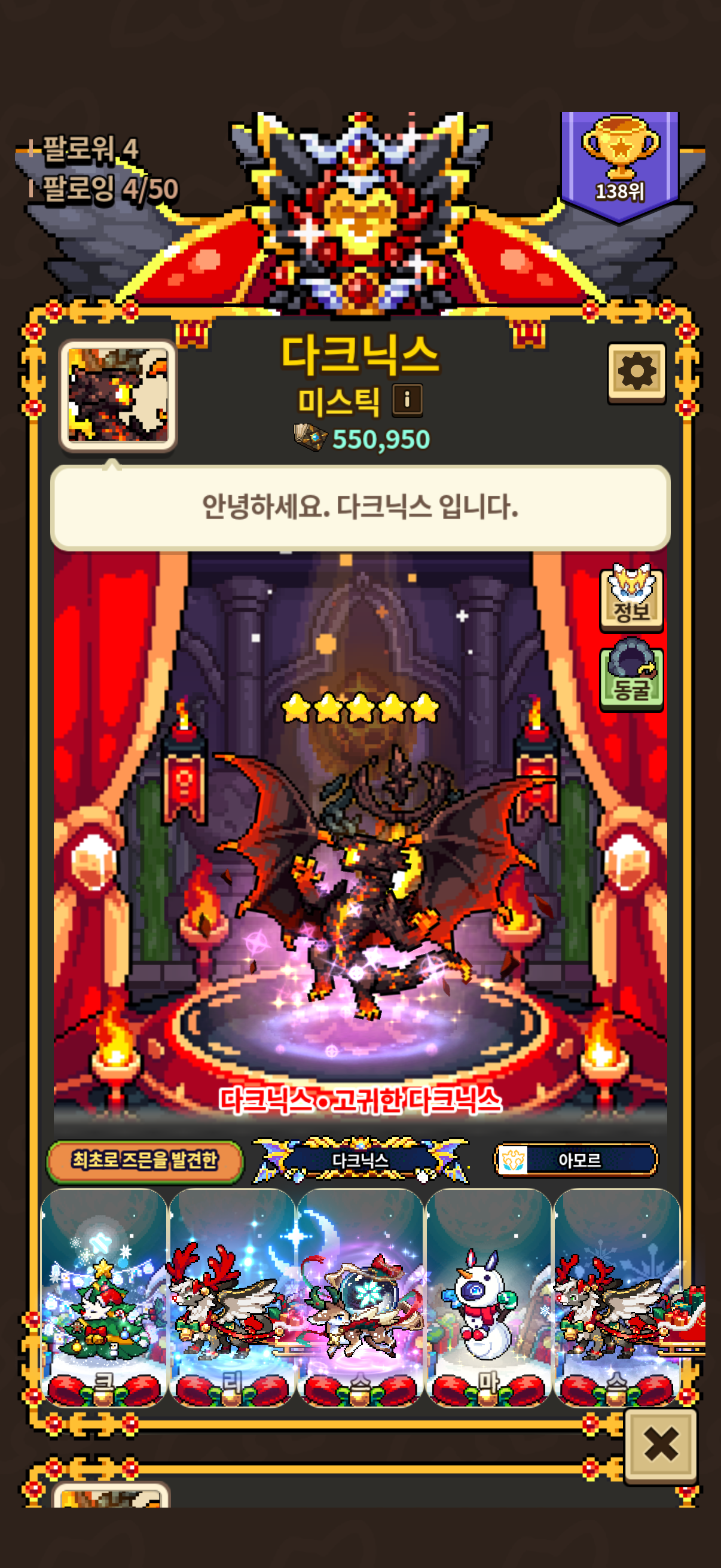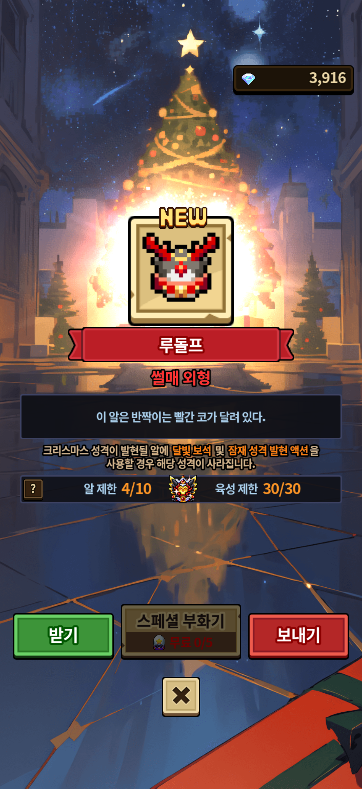크리스마스 트리, 눈사람, 루돌프, 스노우볼 전부 나왔는데 다음 크리스마스 신규 드래곤은 멀루 나올건지 기대되네요. 기존 드래곤인데 트리인 아비스? 호저리처럼 신규용? 원랜 스노우볼이 가장 유력했는데,,