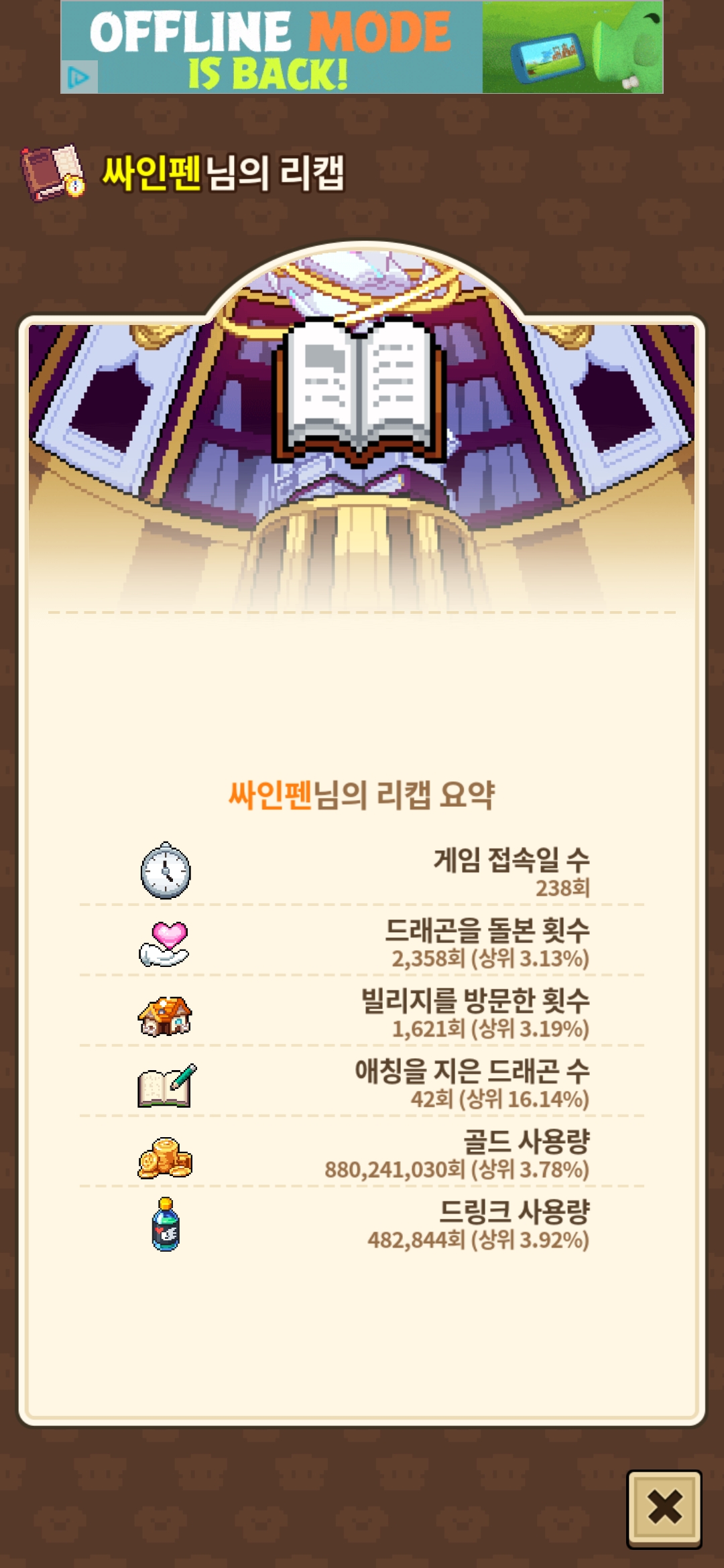 또한 2세대부턴 그냥 용뼈?더라고요 아무튼 이김에 리캡도 슬쩍 올려봅니다 게임을 복귀한지 얼마 안 되었는데도 이정도면 나름대로 만족됩니다 :)