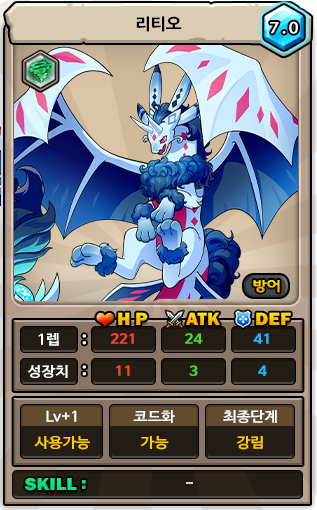 일기당천으로 악을 물리쳐 쓰러트린 맹장의 혼이 깃든 드래곤. 투신과 같은 강인함으로 많은 이들에게 선망의 대상이 되고 있다. | 일기당천으로 악을 물리쳐 쓰러트린 맹장의 혼이 깃든 드래곤. 먼 동방에서 홀연히 나타난 의문의 존재로 투신과 같은 강인함으로 많은 이들에게 선망의 대상으로 알려져 있다. |