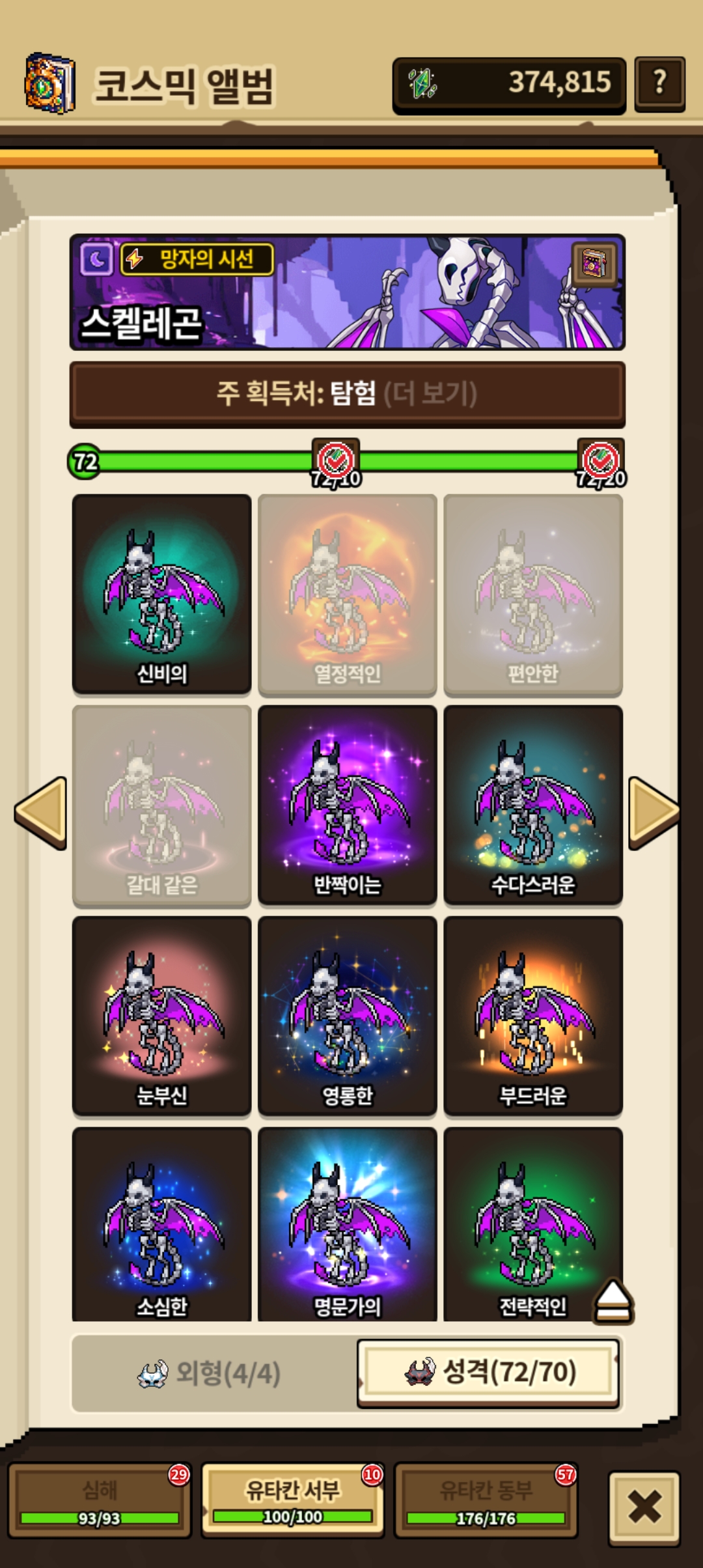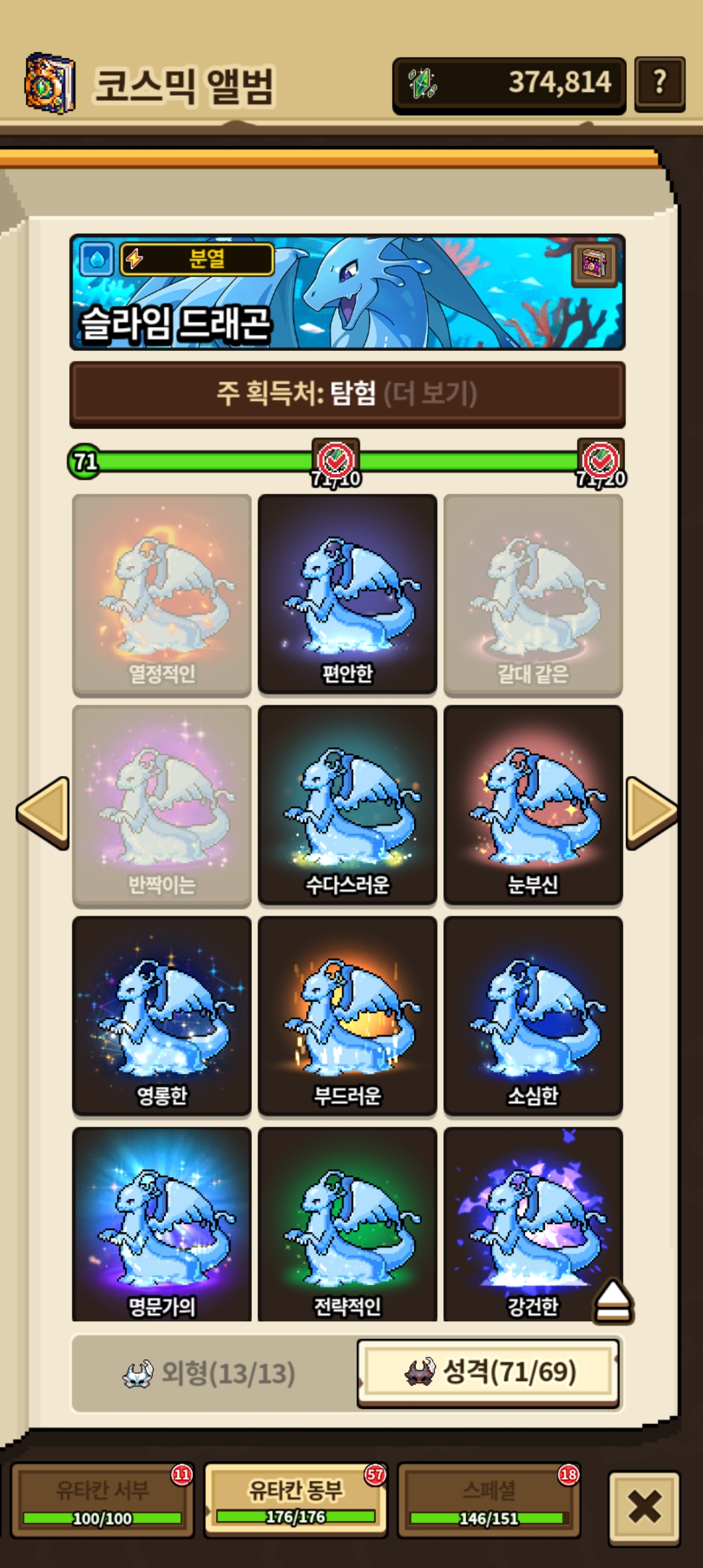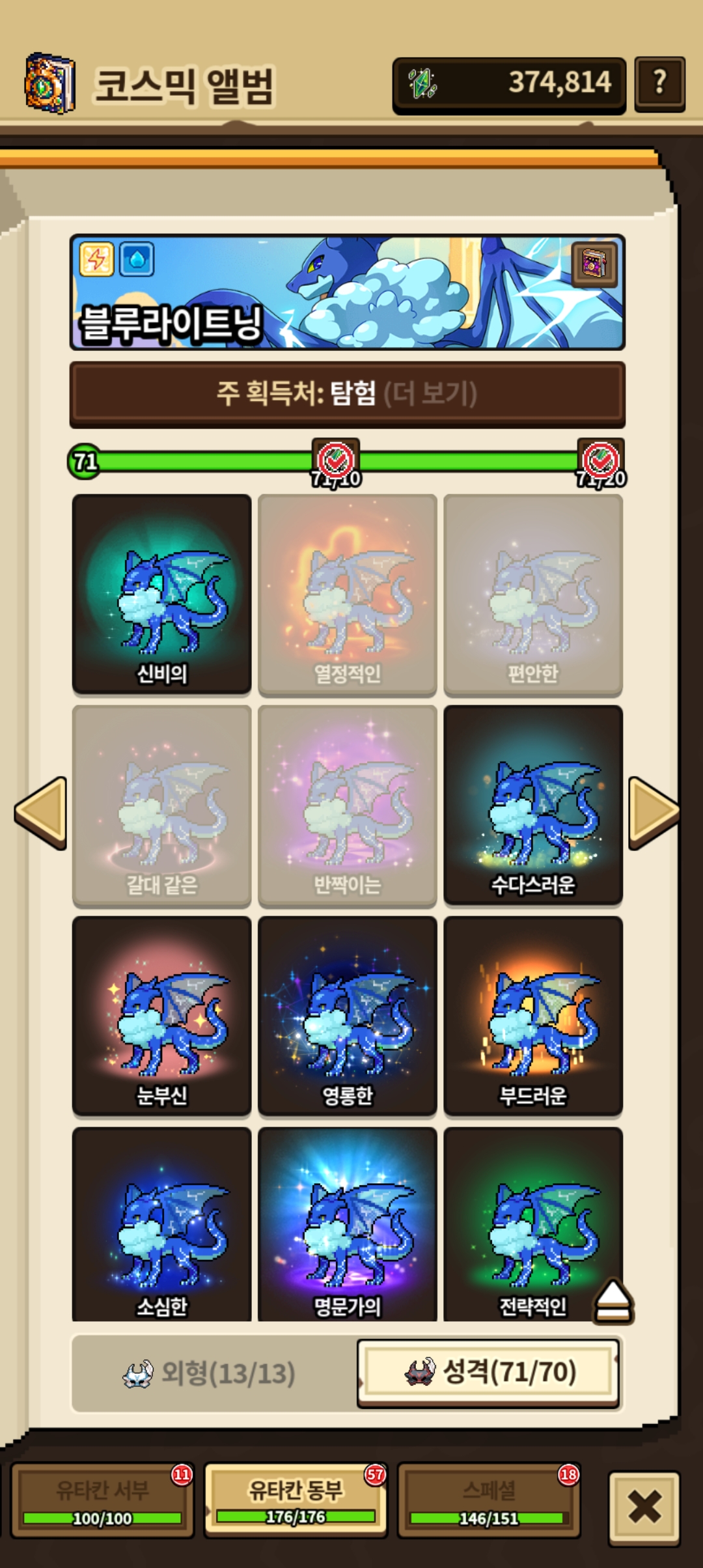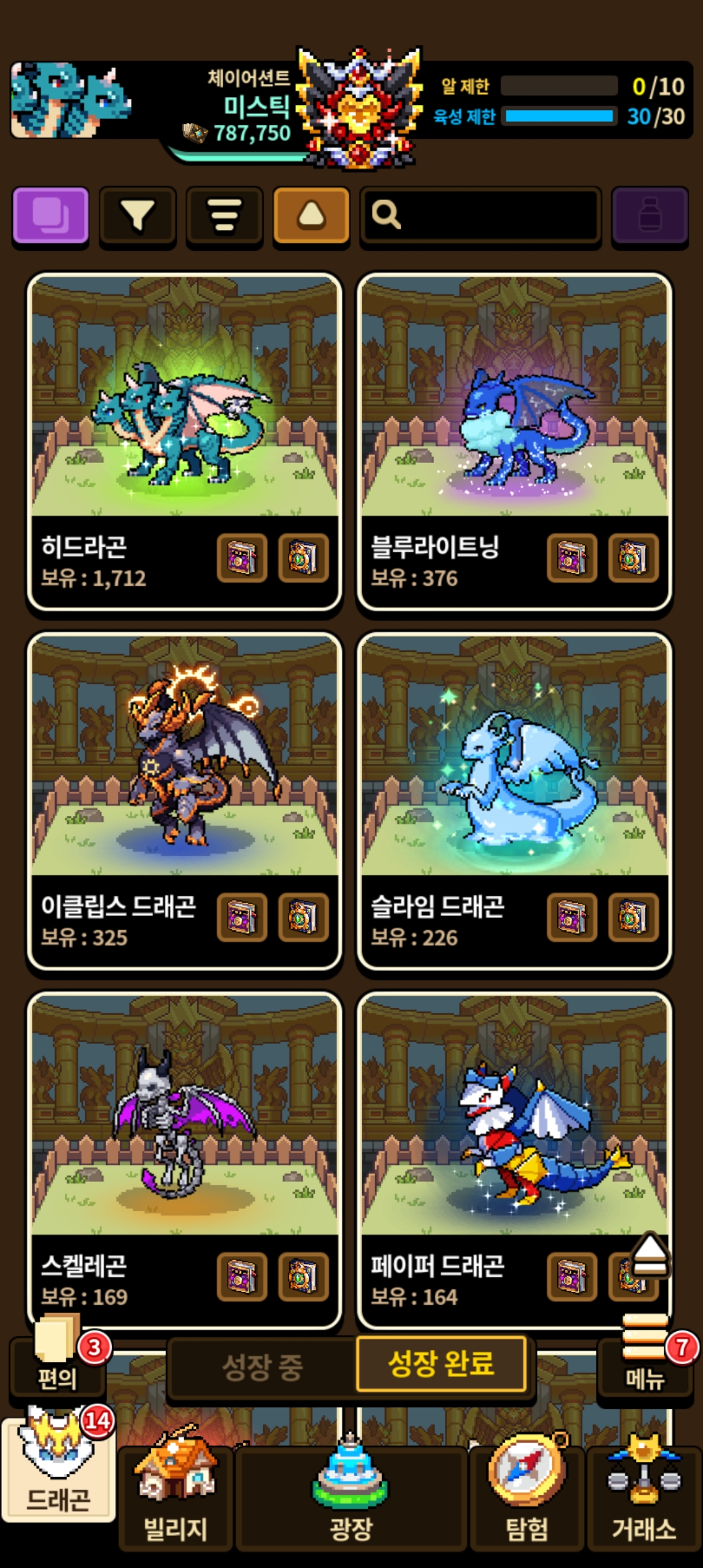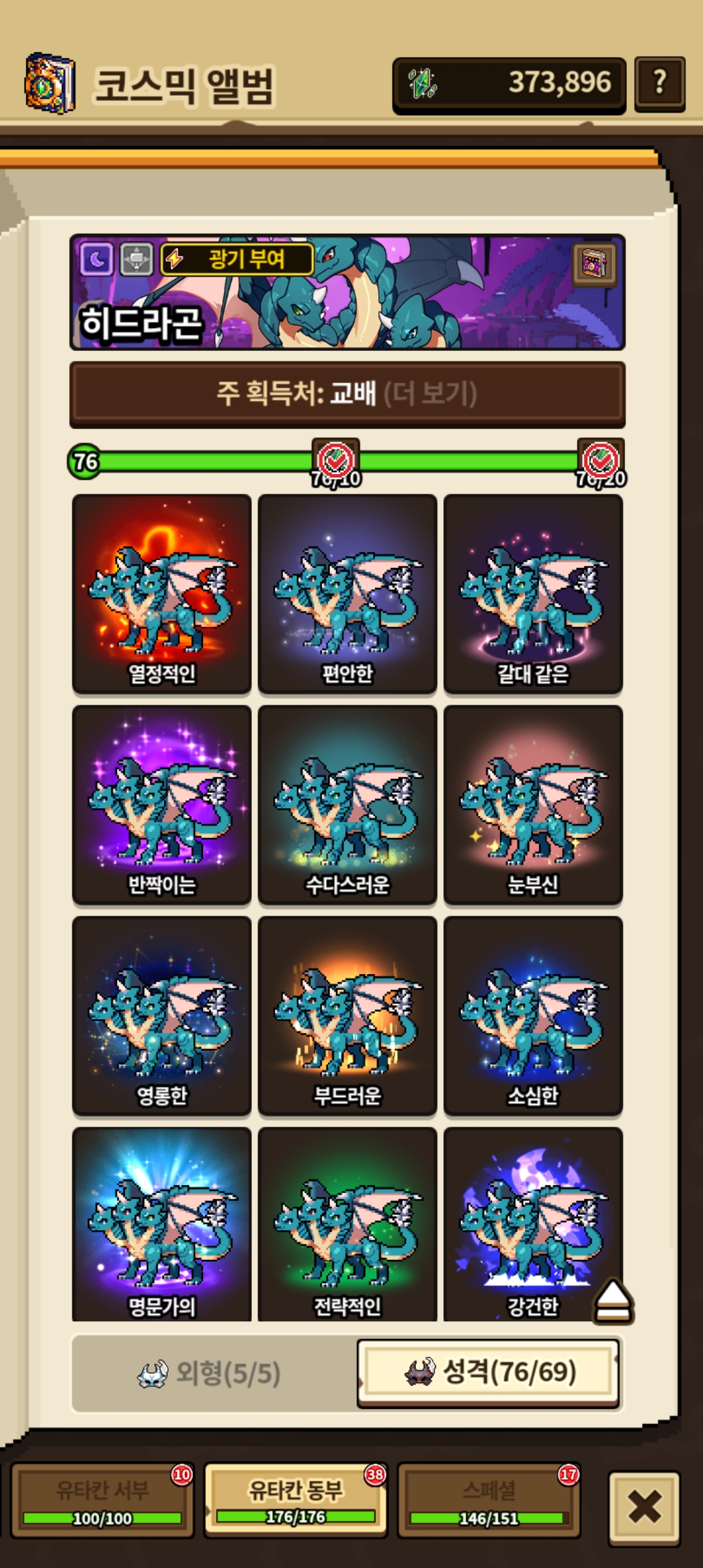 다른 드래곤들도 없는 성격도 시간나면 키워야겠군요.