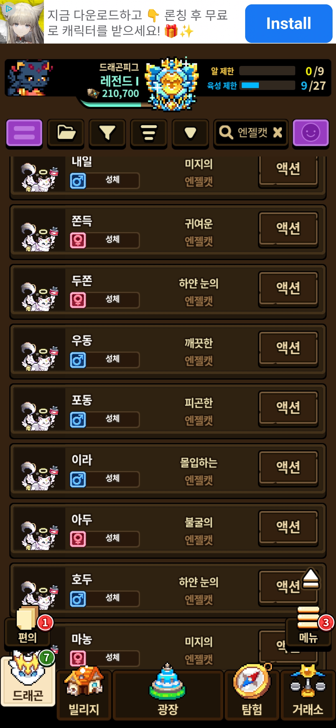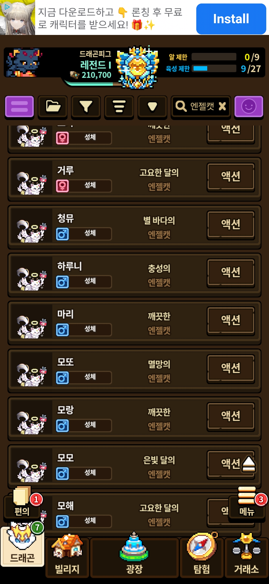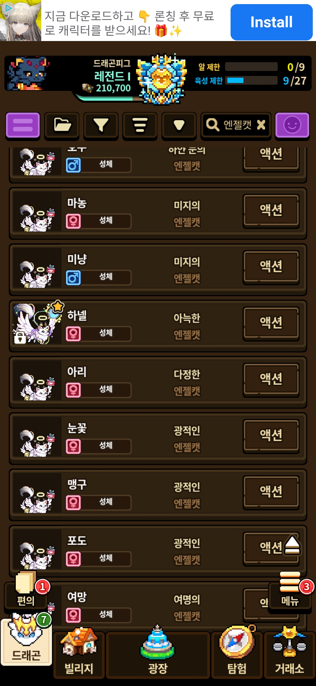 6 무과금이라 맨날 일퀘해서 깹장으로 1세대 엔젤캣 5마리 얻음 (나머지 2마리 1세대는 전에 이달의 알에서 드링크 20000으로 뽑은 시간냥 2마리)(중복 외형이 꽤 있어서 모든 외형 얻을 예정임 )