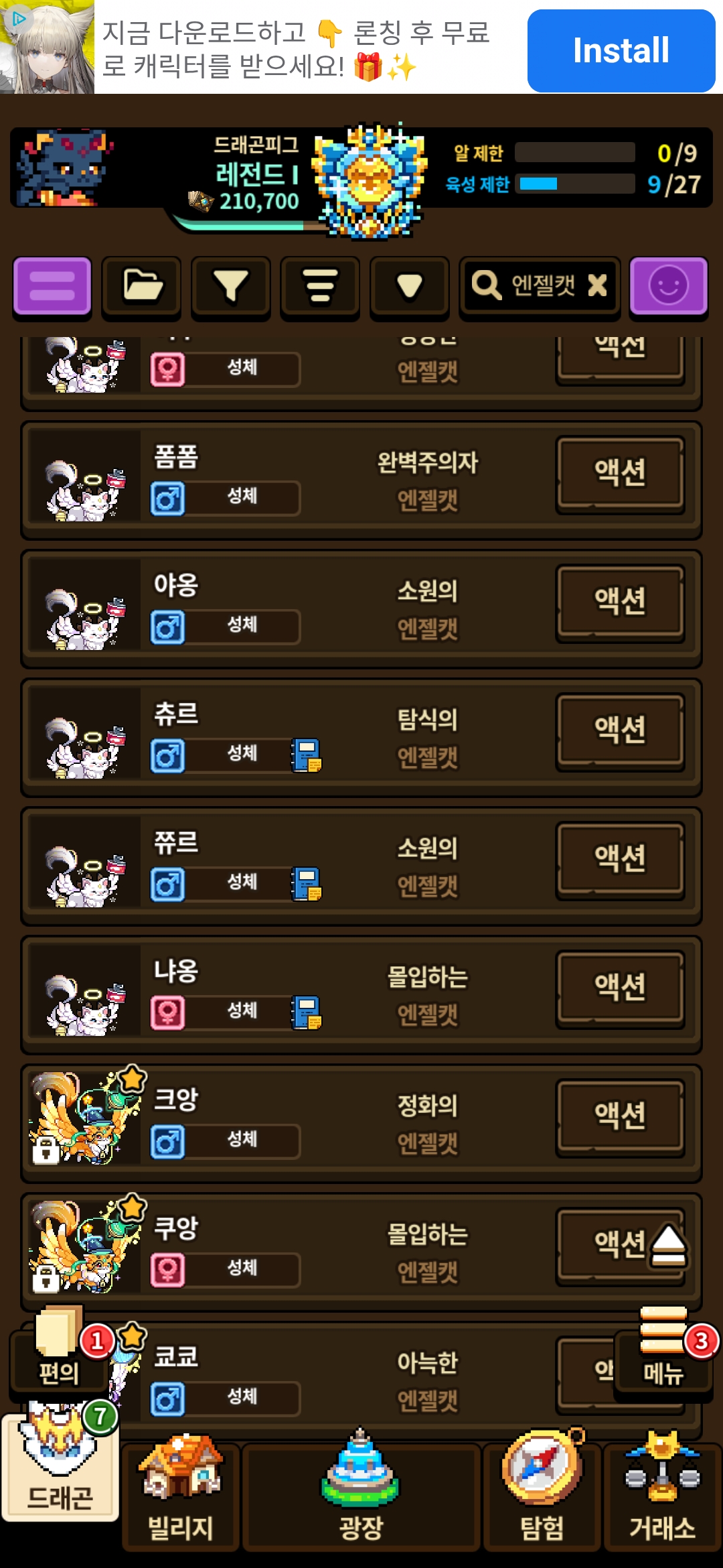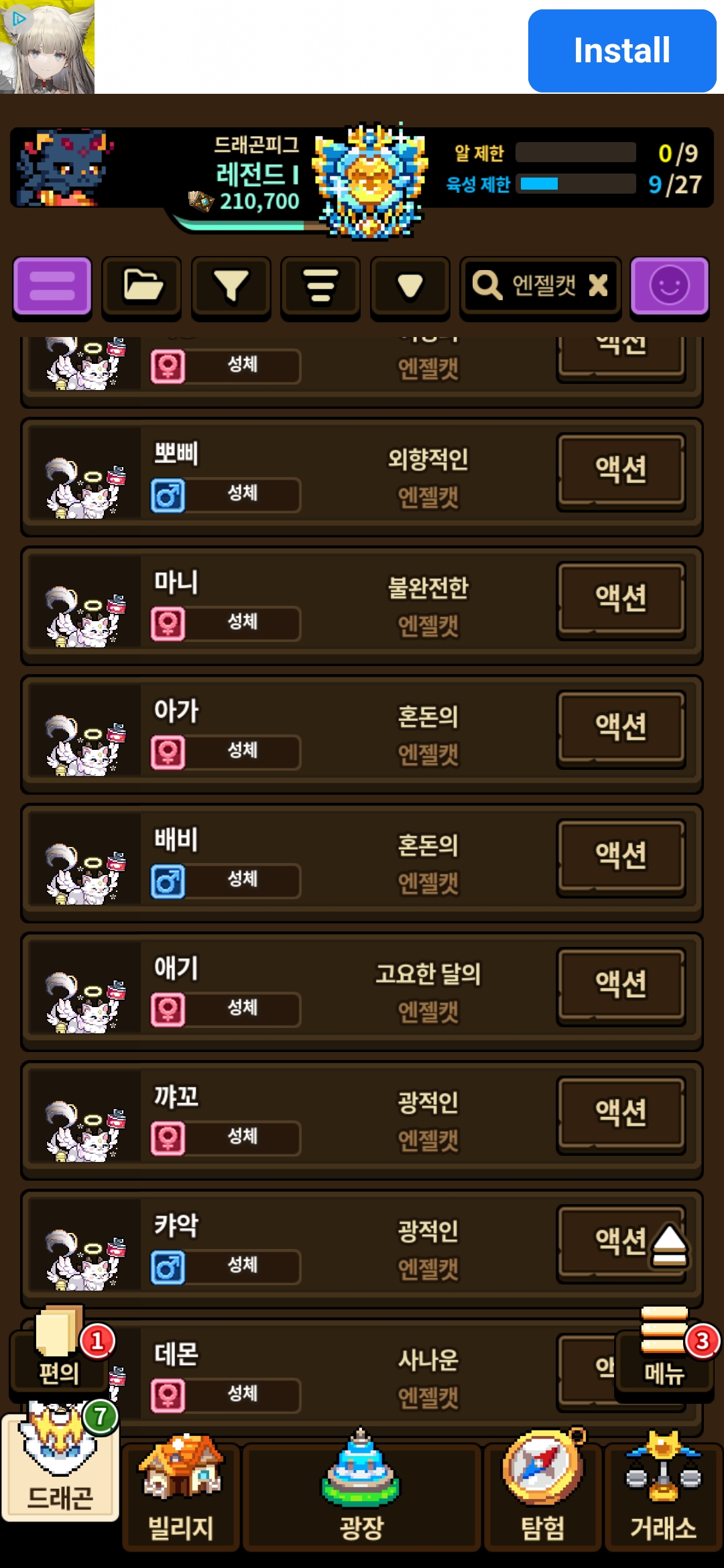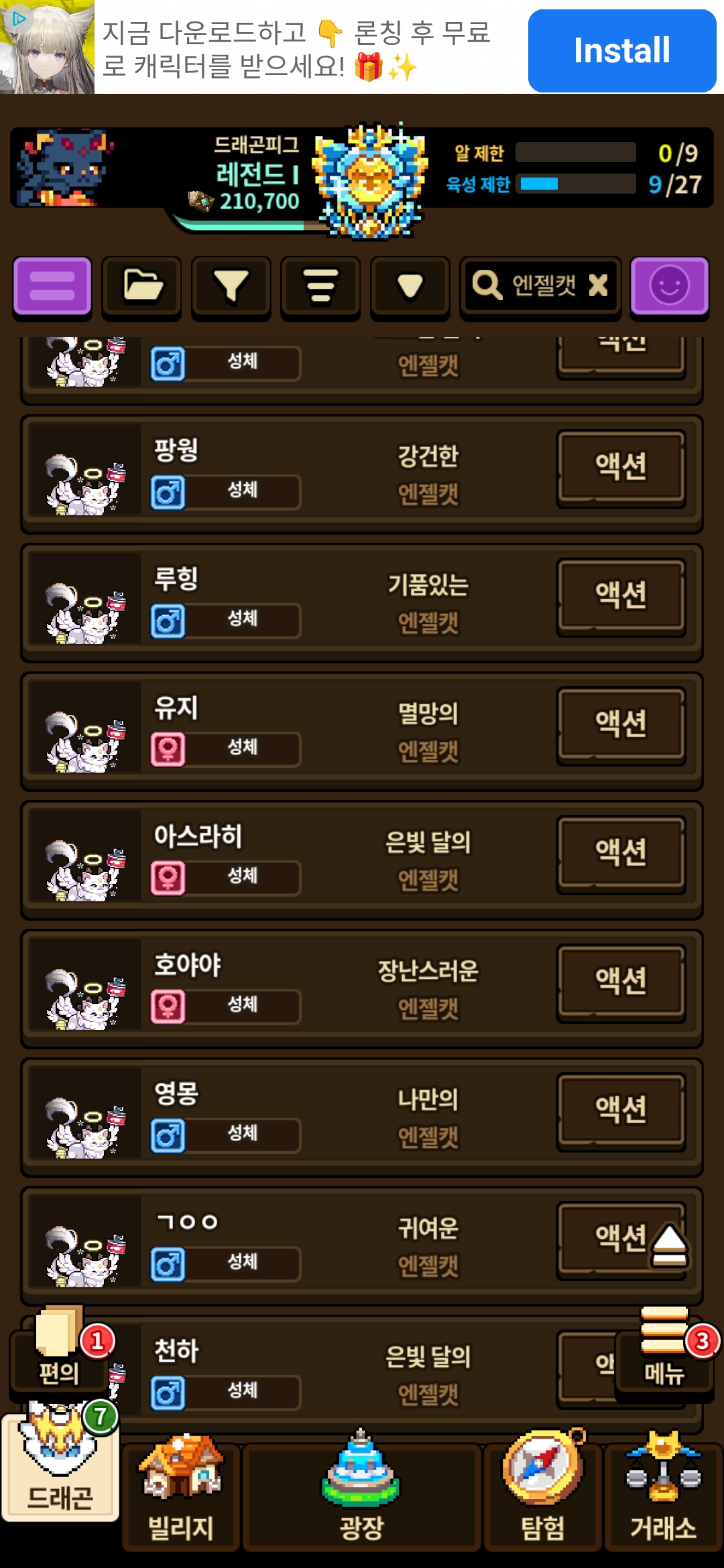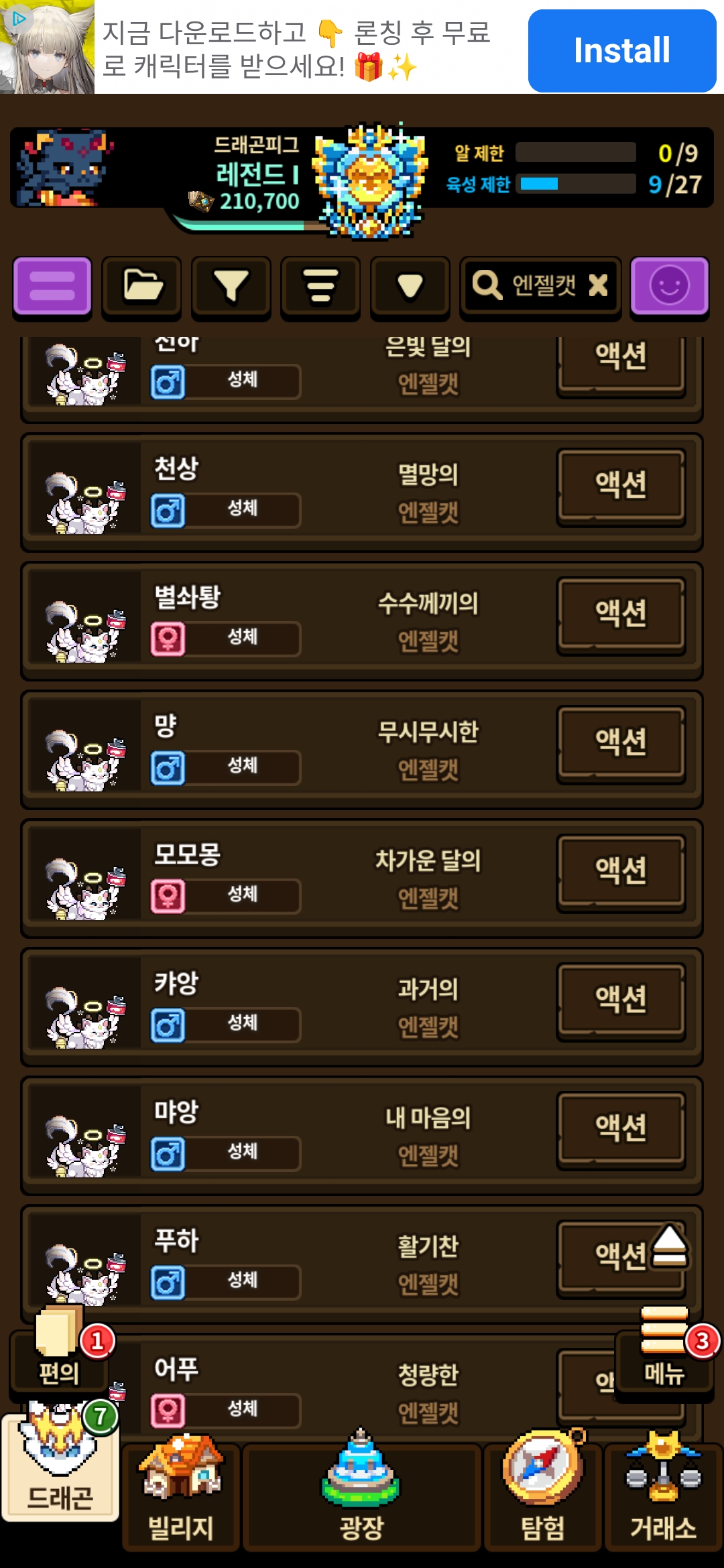 6 무과금이라 맨날 일퀘해서 깹장으로 1세대 엔젤캣 5마리 얻음 (나머지 2마리 1세대는 전에 이달의 알에서 드링크 20000으로 뽑은 시간냥 2마리)(중복 외형이 꽤 있어서 모든 외형 얻을 예정임 )