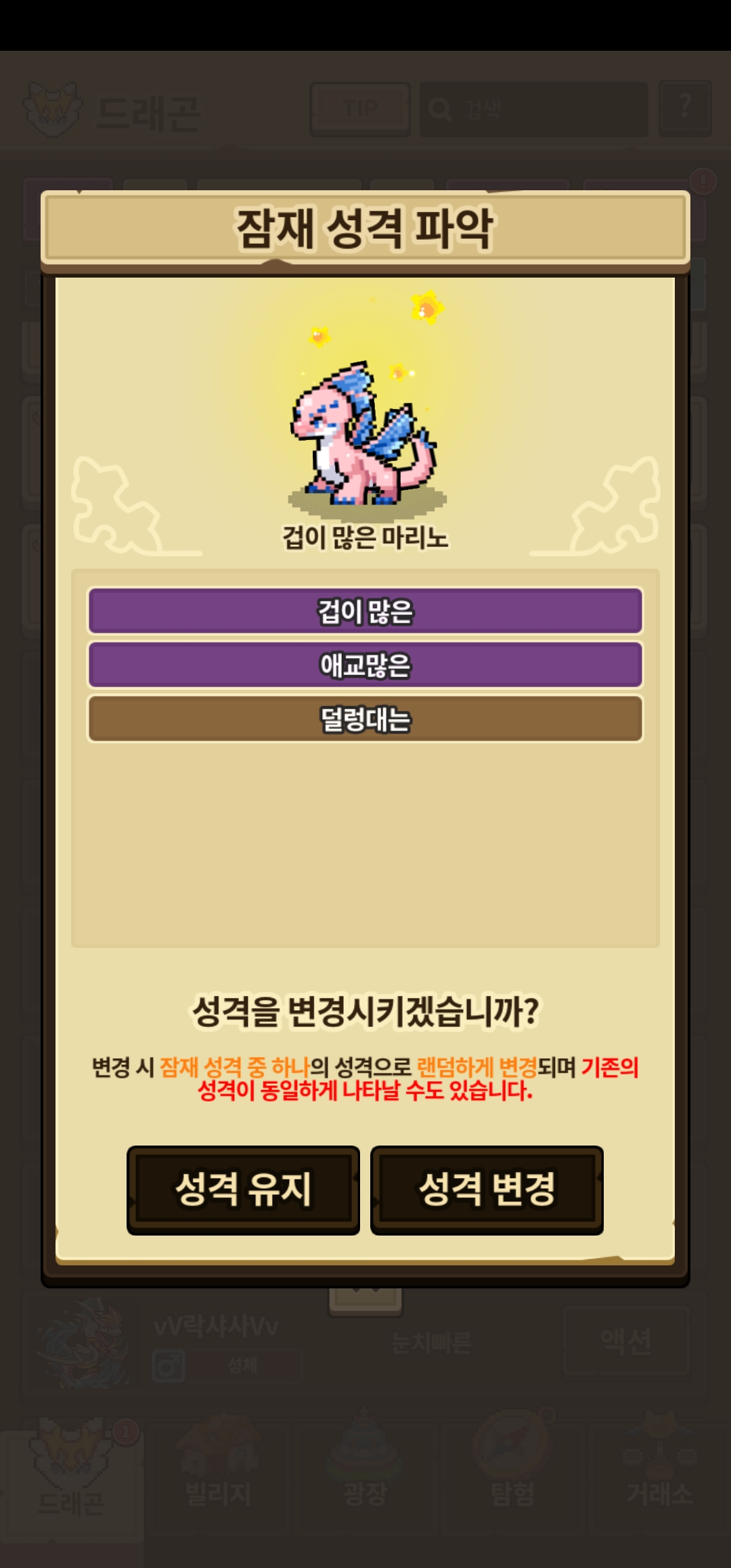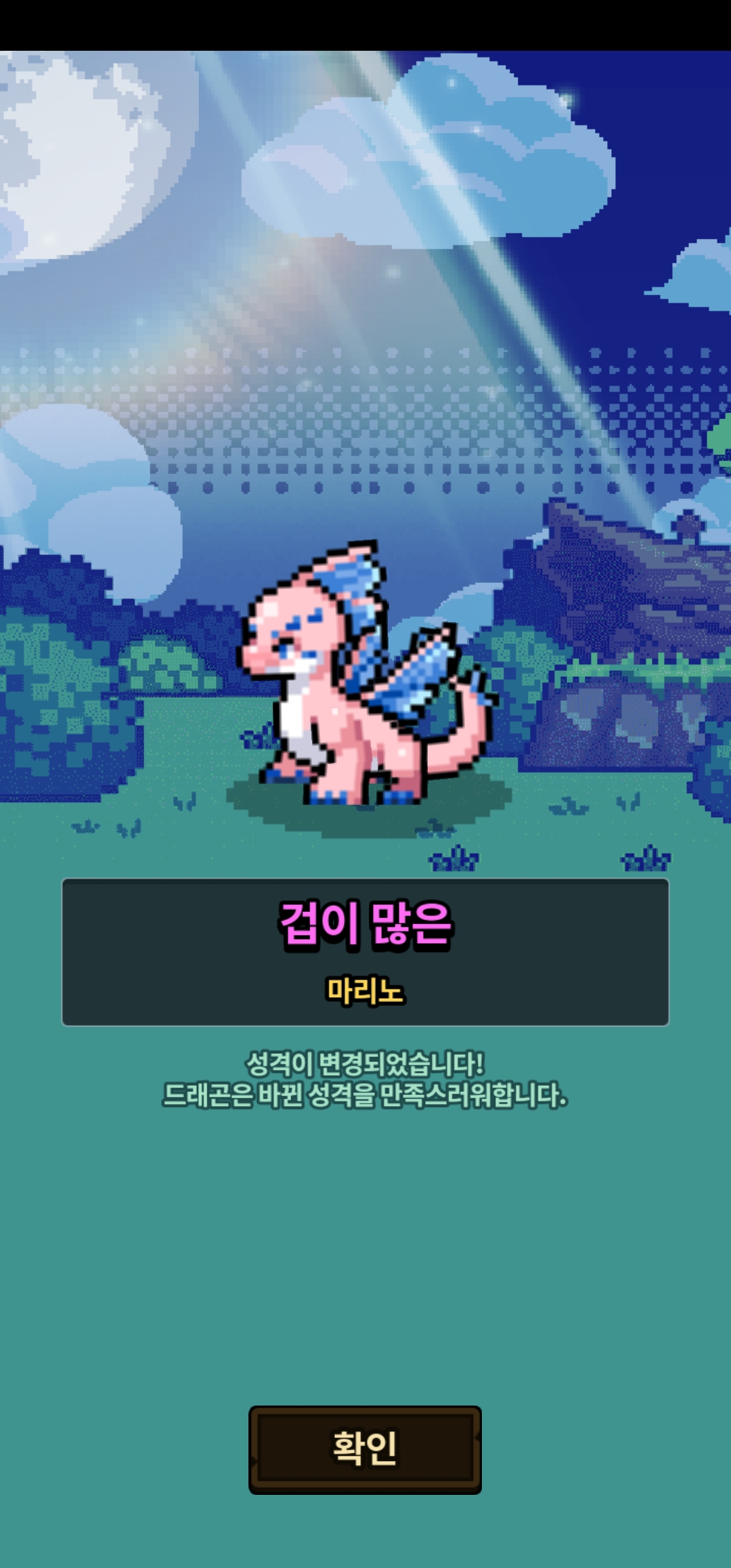 랜덤 부여여서 애교많은 노리고 시도해봤는데 겁이 많은이 다시 떴네요… 근데 꽤 좋은 특능인 것 같아요 루네라 여러마리면 성격작에 도움이 될지도