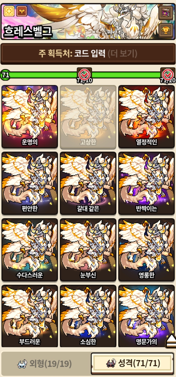 다 채우자마자 신규 성격이 업데이트되어서 결국 또 비어버린 도감…
