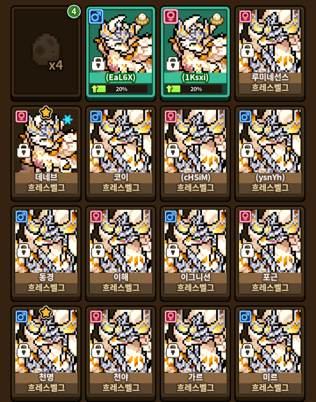 데리고 있는 1세대들인데 보시다시피 애들 이름이 다 제각각이라 ㅠ