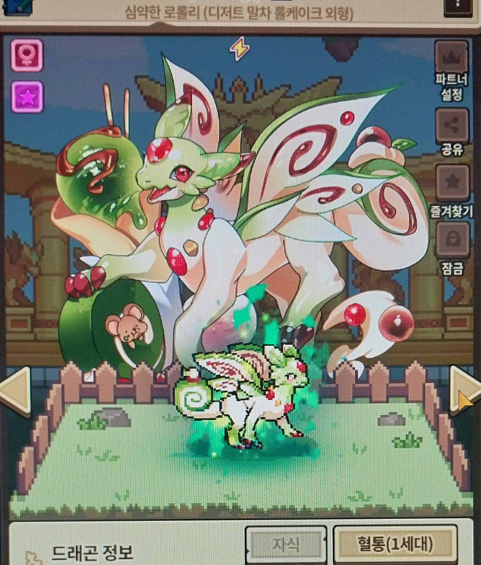 ![]() 잔별의 백호 (1세대) | ![]() 해오름의 주작(1세대) | ![]() 디저트 로롤리 (1세대) |