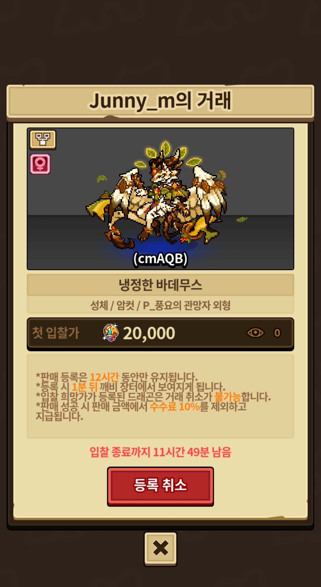바데무스 청사룡 팔아요! 둘다 자식 없습니다!