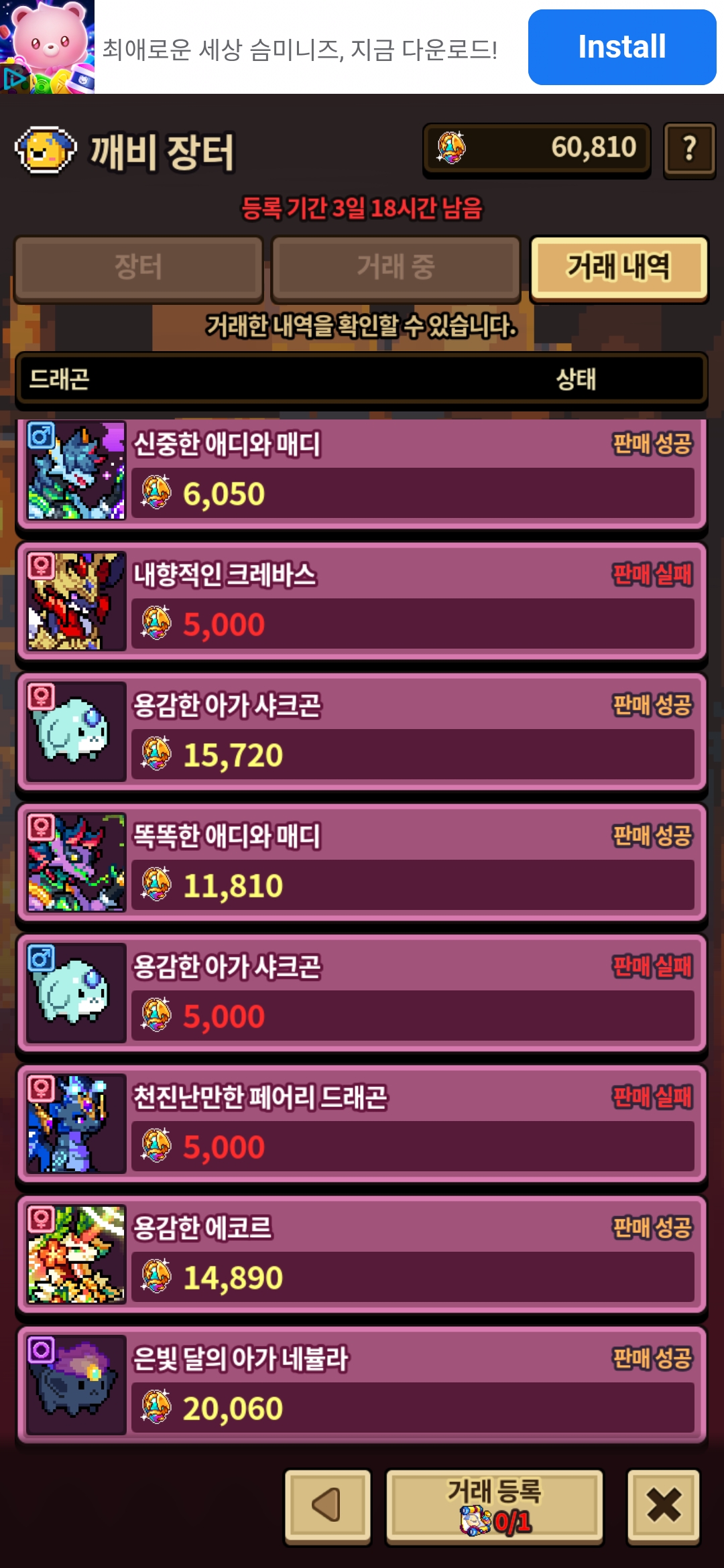 7만 2천 드라젬 벌었어요 등록을 좀 많이 풀어주셨으면 좋겠네요