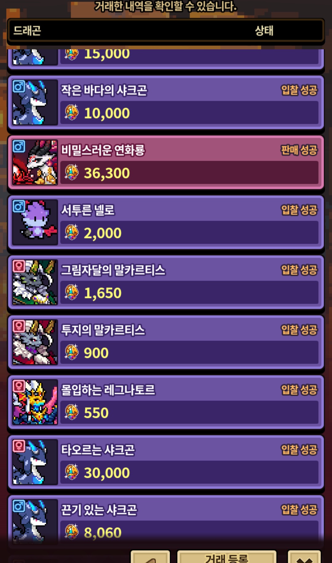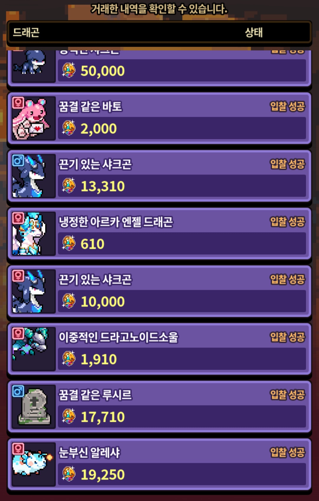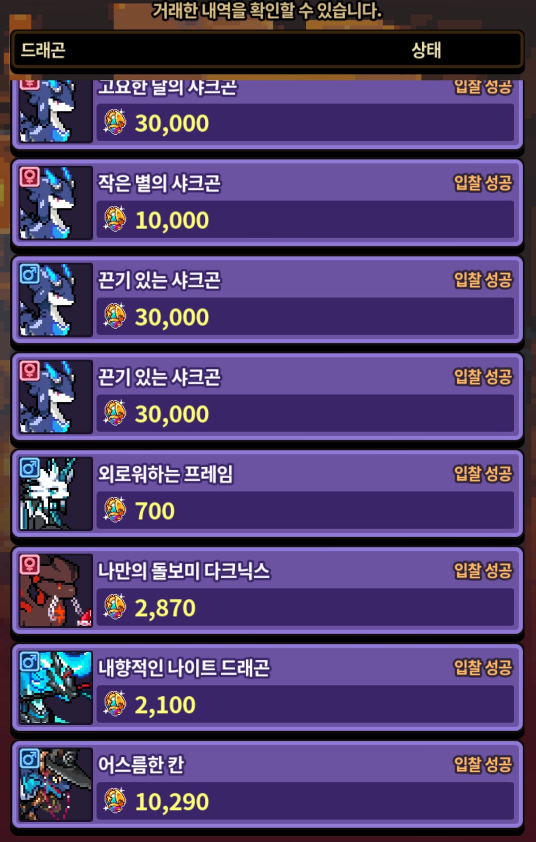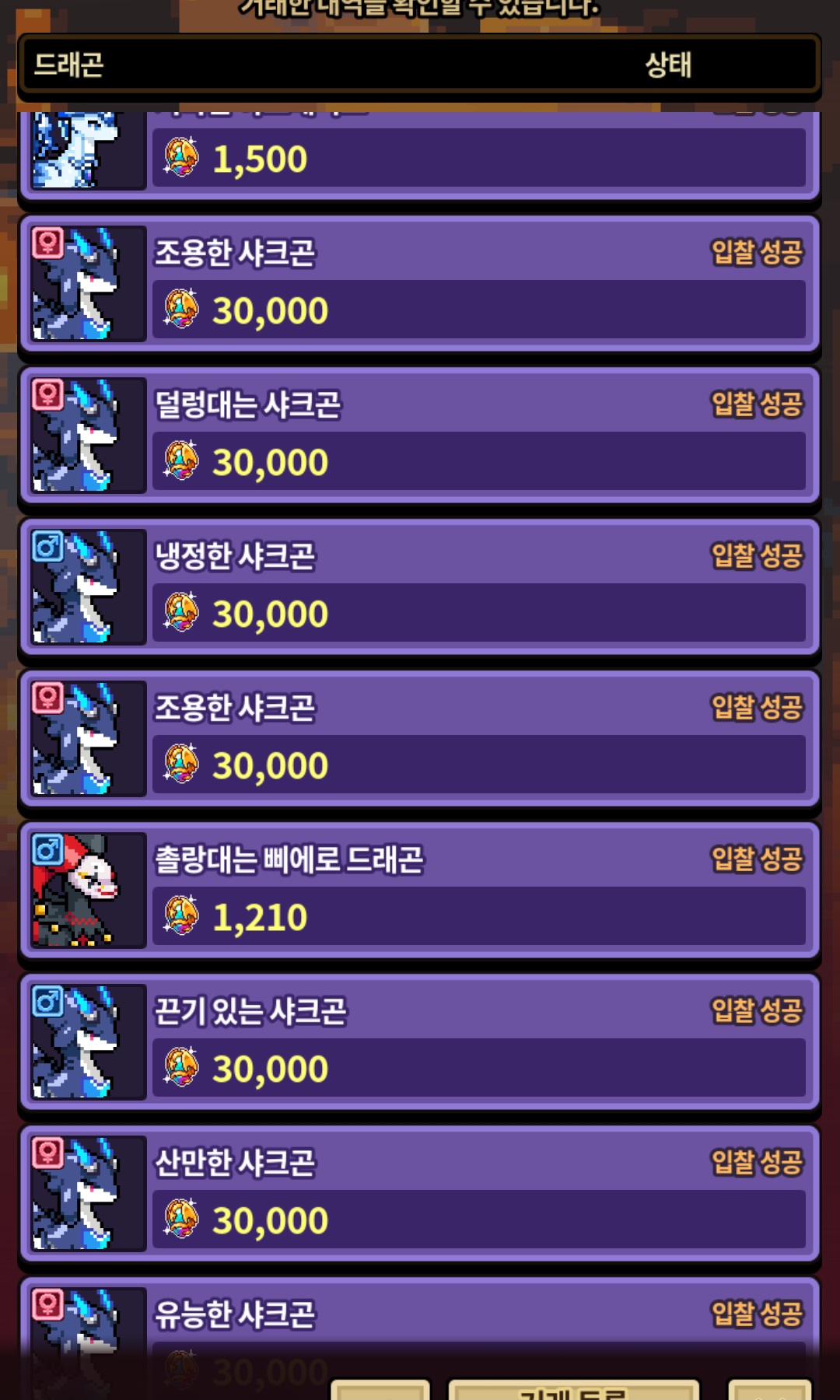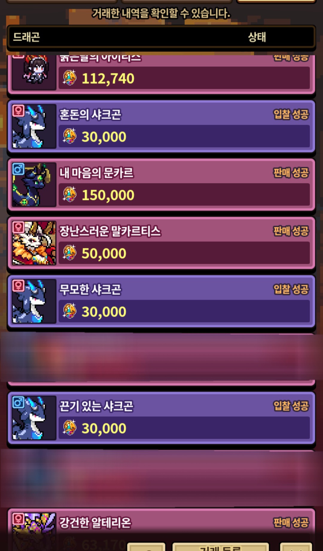샤크곤이야 뭐 원래 구하던 애들이라 큰 금액 주고서도 데려온거라 괜찮은데 다른 해치동결이나 VIP오라 붙은 용들한테 홀려서 그만..ㅋㅋㅋㅋㅋ