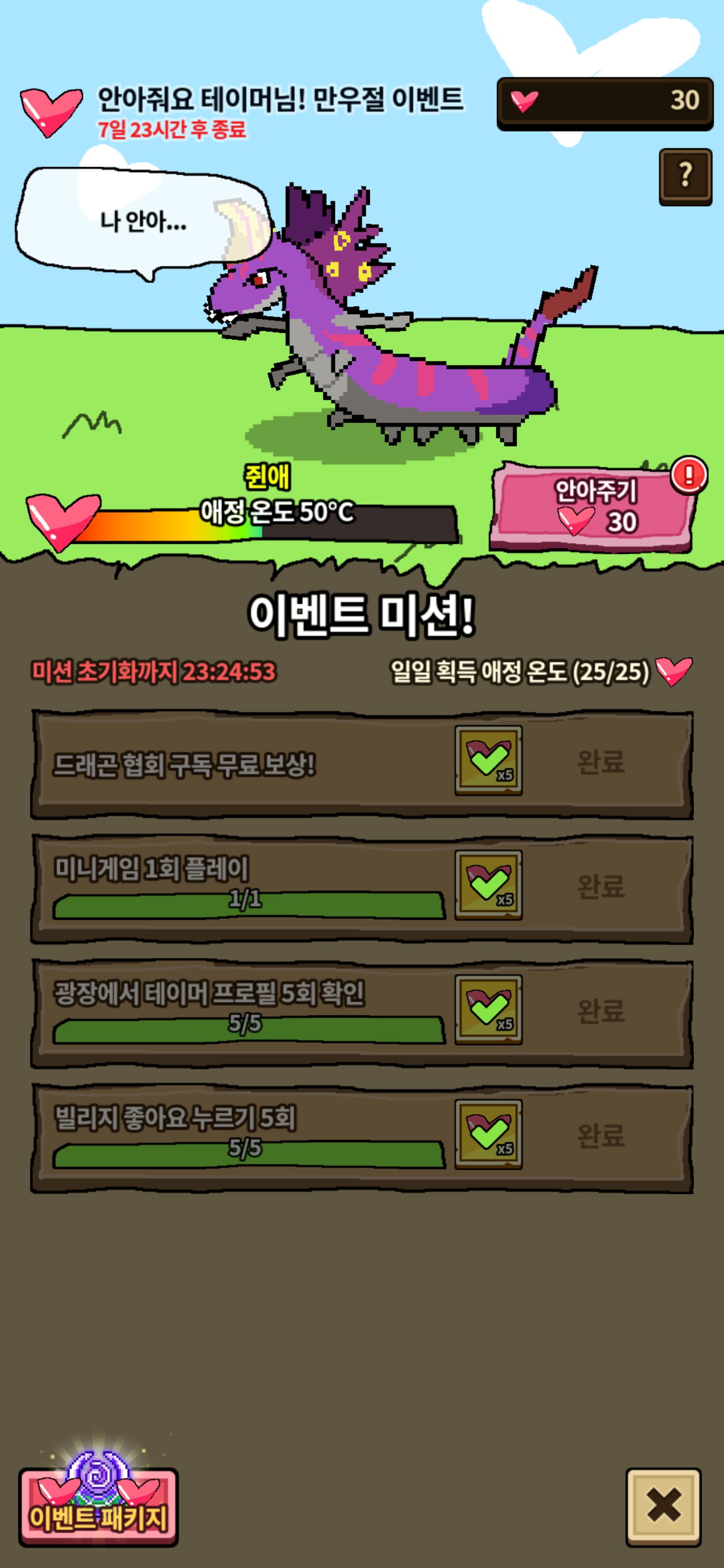 며칠 전에 동굴 패키지 산 것 말고는 뭐 구매한게 없는데 왜 오늘 30개가 모였을까요?