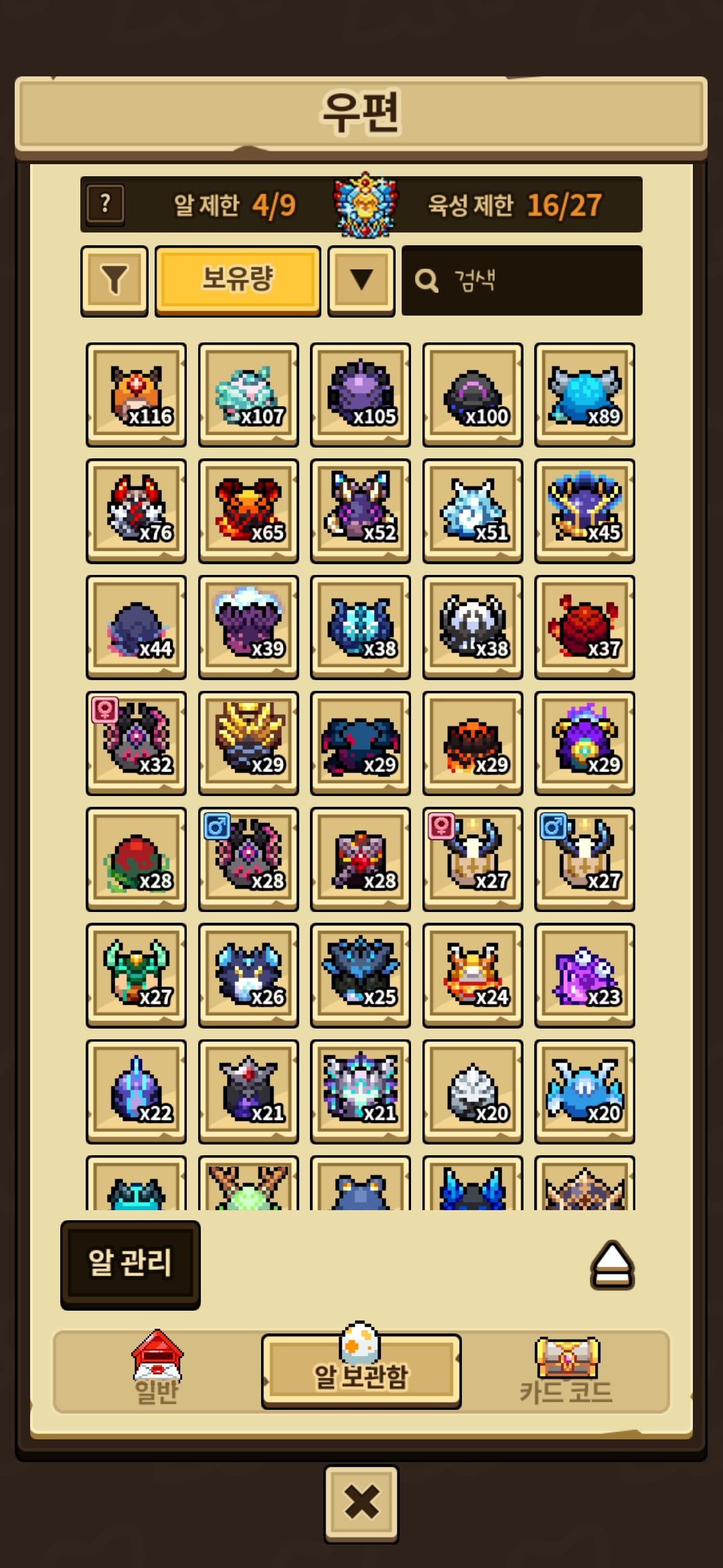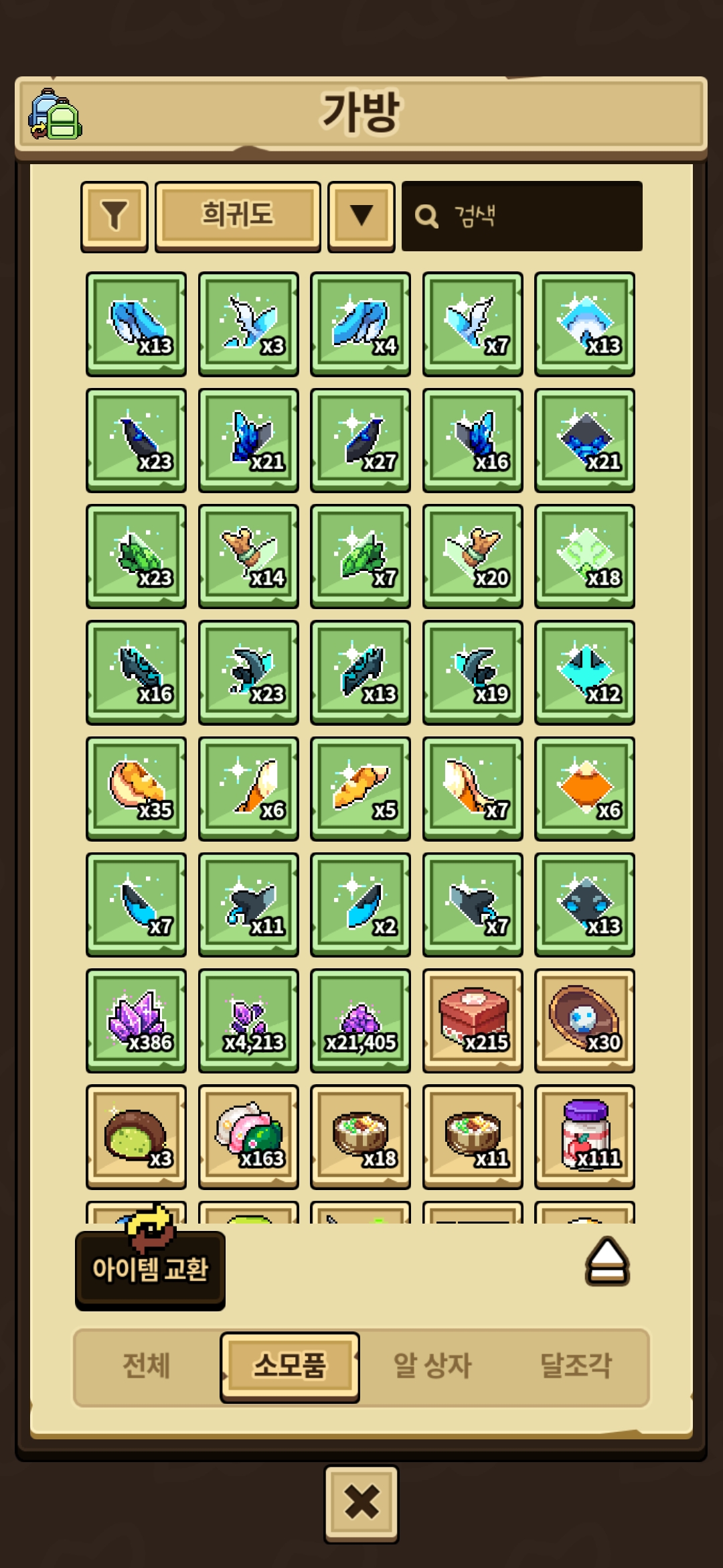 참고하셈, 보유량 20개이상만 찍힘