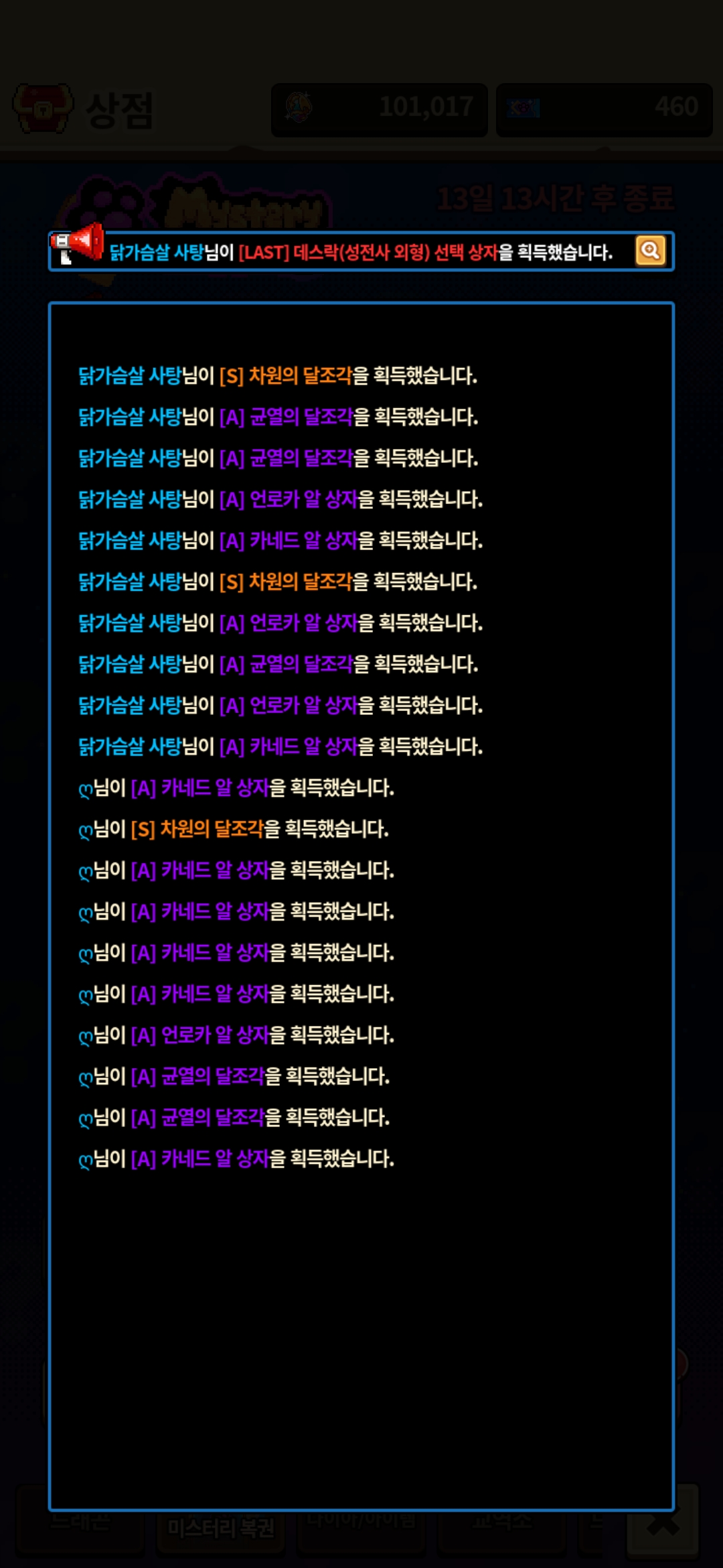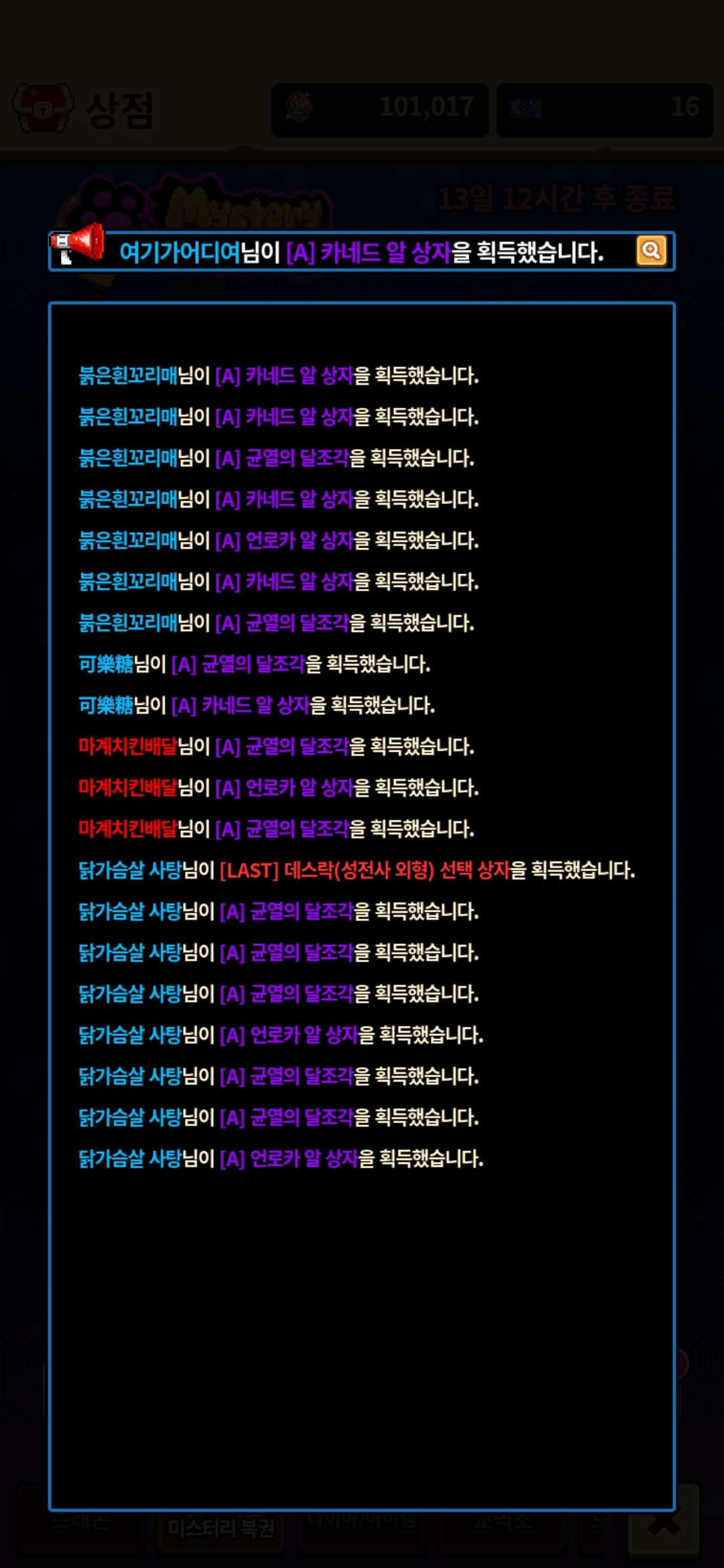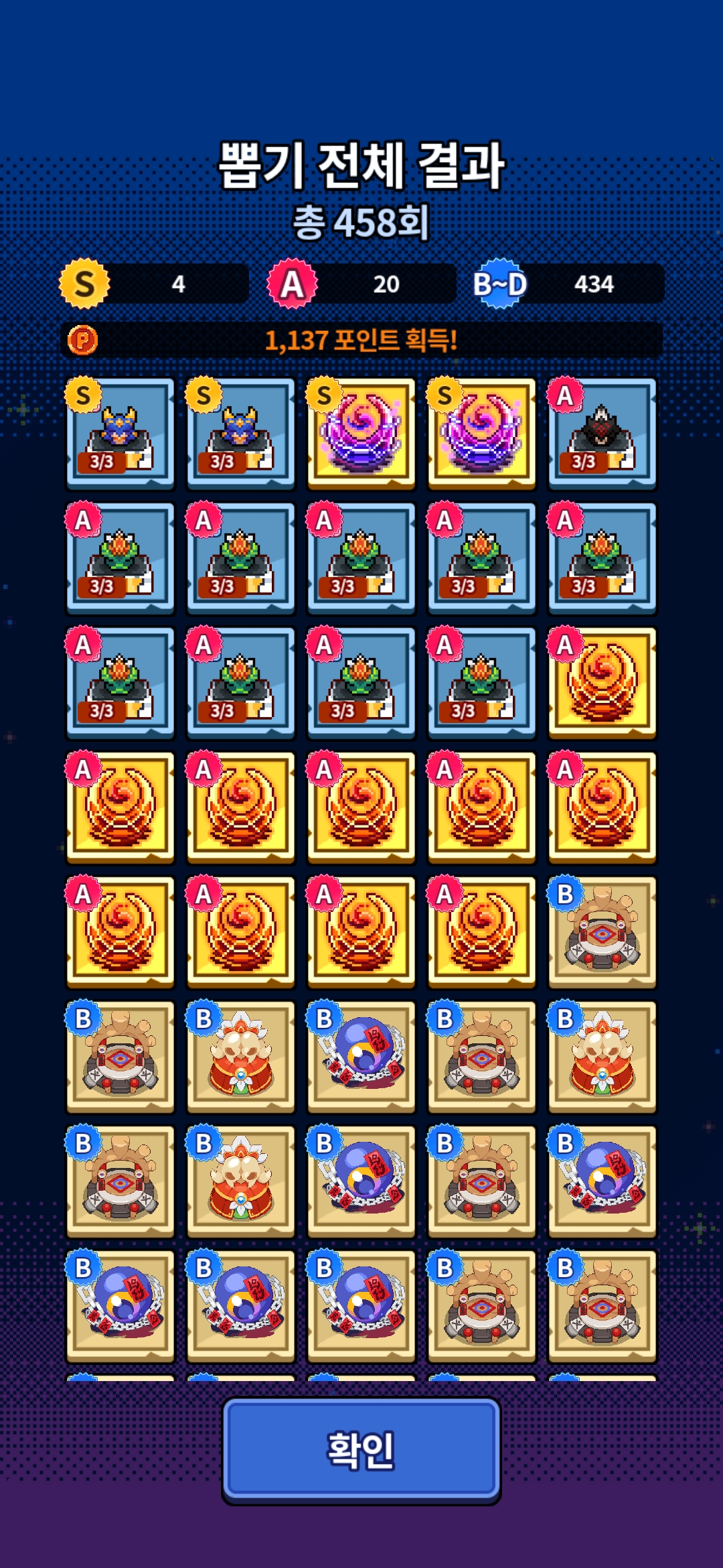 요즘 가챠 제일복권이 인기던데… 그 느낌살려서 한거같지만 뭐랄까…뽑는데 스릴 기대 보다는 딸깍 끝..인 느낌..쩝