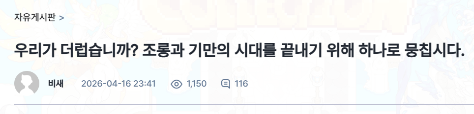 유저를 조롱한 “더러워서 접는다”는 멘트에 대해