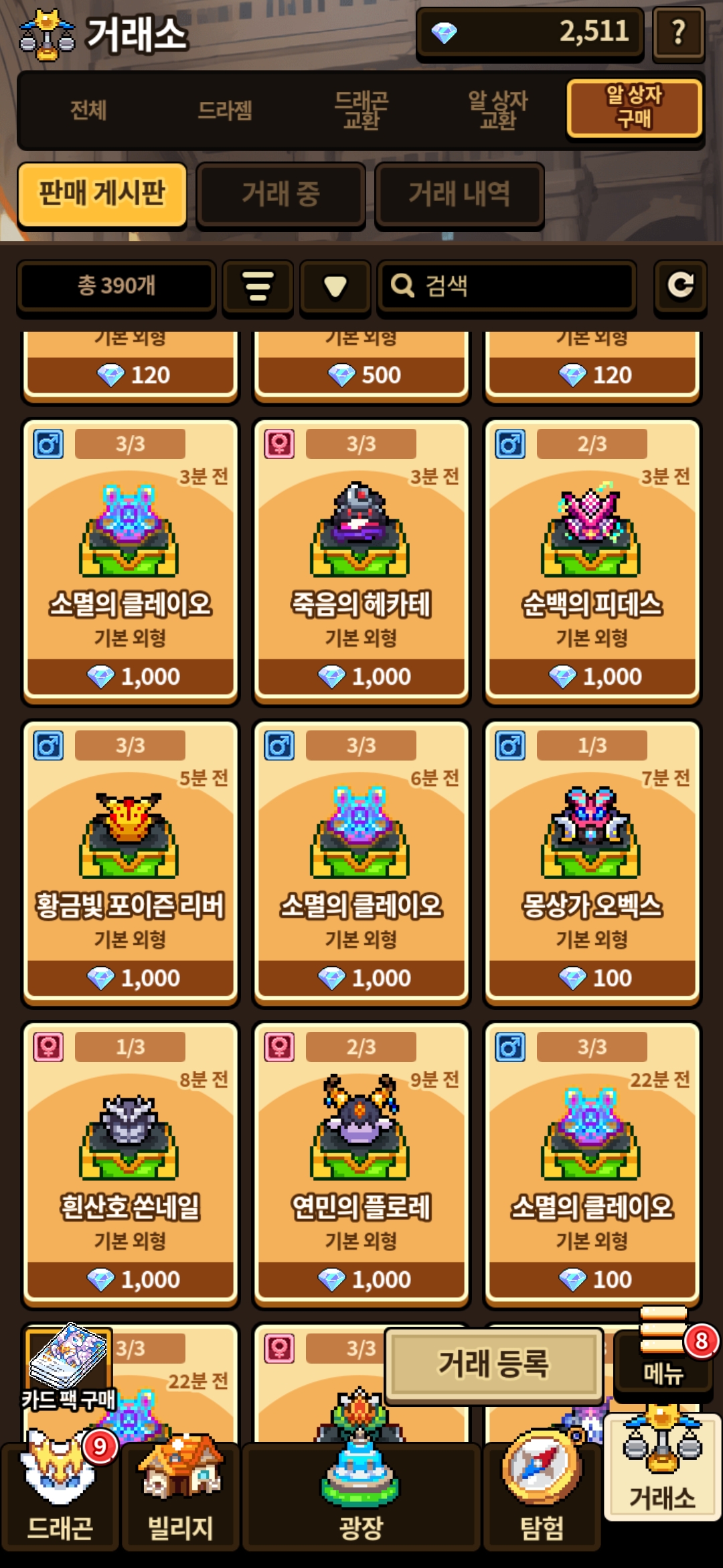 그러나 그당시 제겐 다이아가 없었습니다. 그리고 에브리아 알을 팔면 100다이아, 운이 좋으면 150까지도 팔 수 있다는걸 알게됐죠.