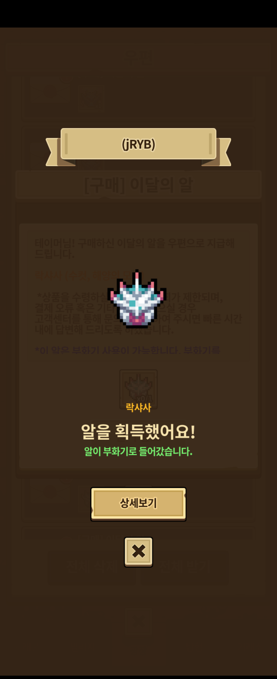 이달의 알을 수령하면 자동으로 부화기로 들어갑니다.