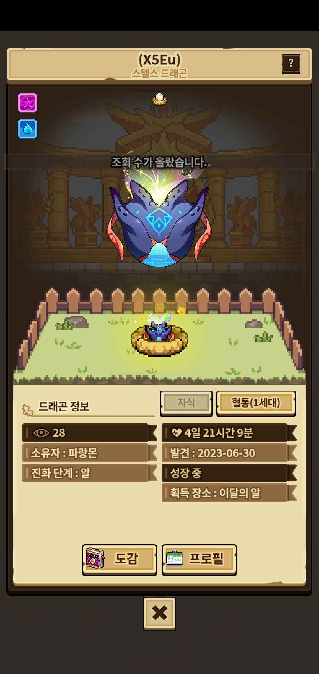 새로이 대려온 분노 스텔스 사랑작을 도전중입니다! 게임에서 닉네임 "엔젤리너스"의 파트너로 설정된 스텔스의 머리를 복복 긁어준 뒤 대댓으로 닉네임과 복복 인증을 남겨주시면 조회수 300 달성뒤 추첨을 통해 4분께 상품을 드립니다:) (순혈 화썬, 락샤사/솔루등..)도감작도 하시구 순혈 친구들을 동굴에 입주 시켜보시는건 어떠실까요?