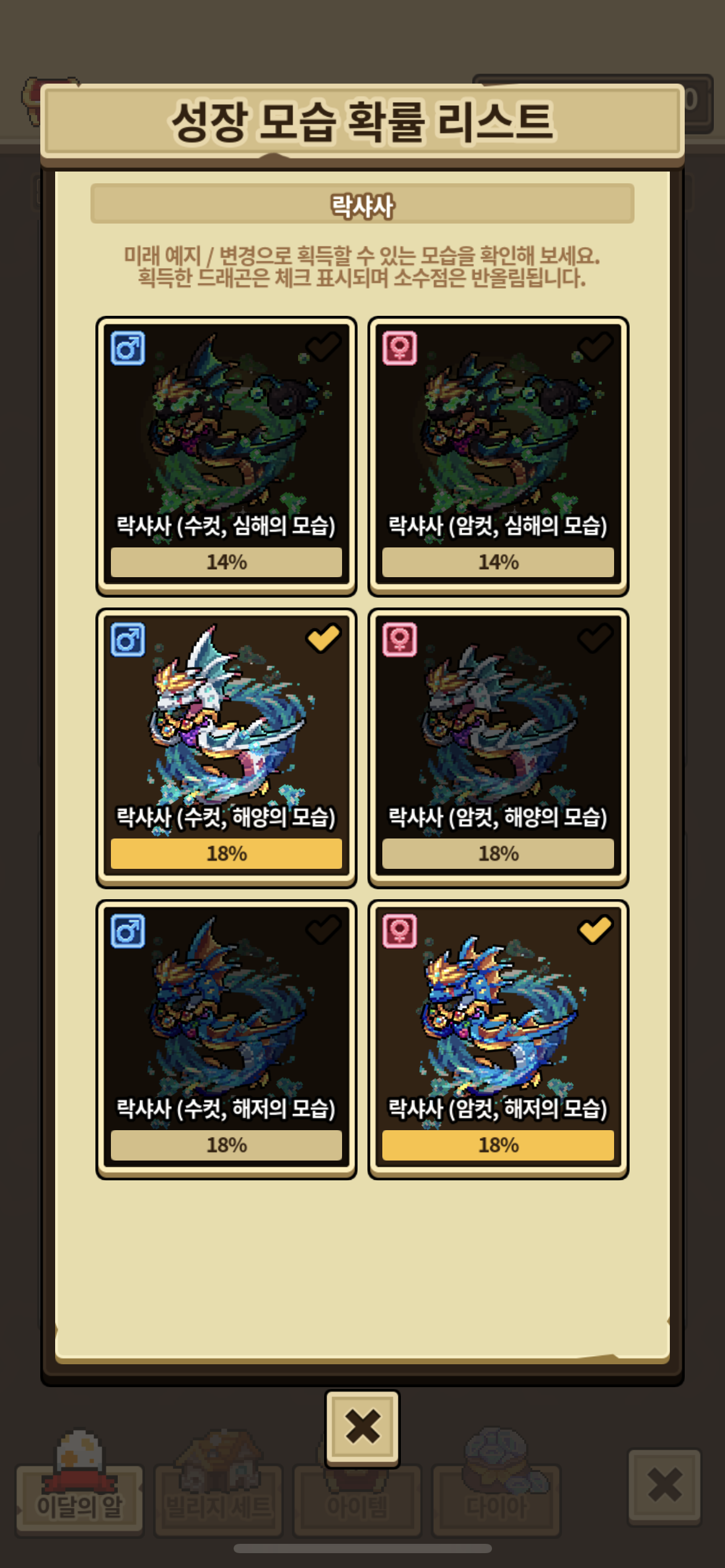 알 처음 샀을 때 해양 수컷 나오길래 좋아하다가 해저모습이 계속 아른거려서 하나 막차탔는데 마침 성별도 암컷으로 나와줬어요 ☺️