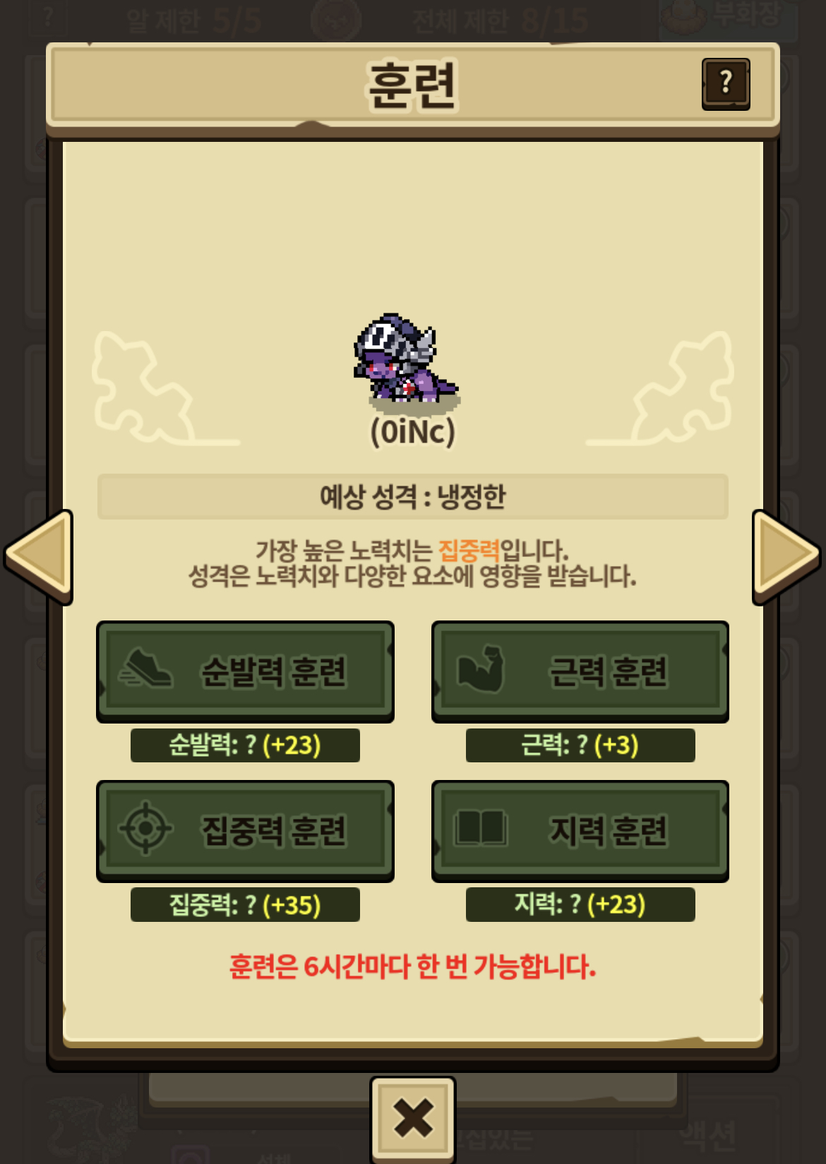 지력, 근력이 가장 높은 능력치 였는데 집중32인 상태에서 +3 하니까 저렇게 됐어요.. 망한건가요ㅠㅜ