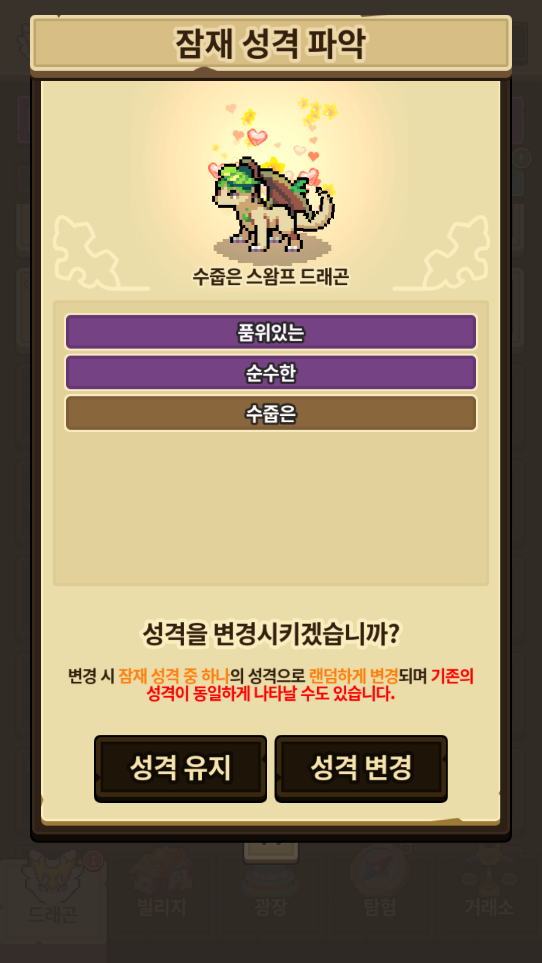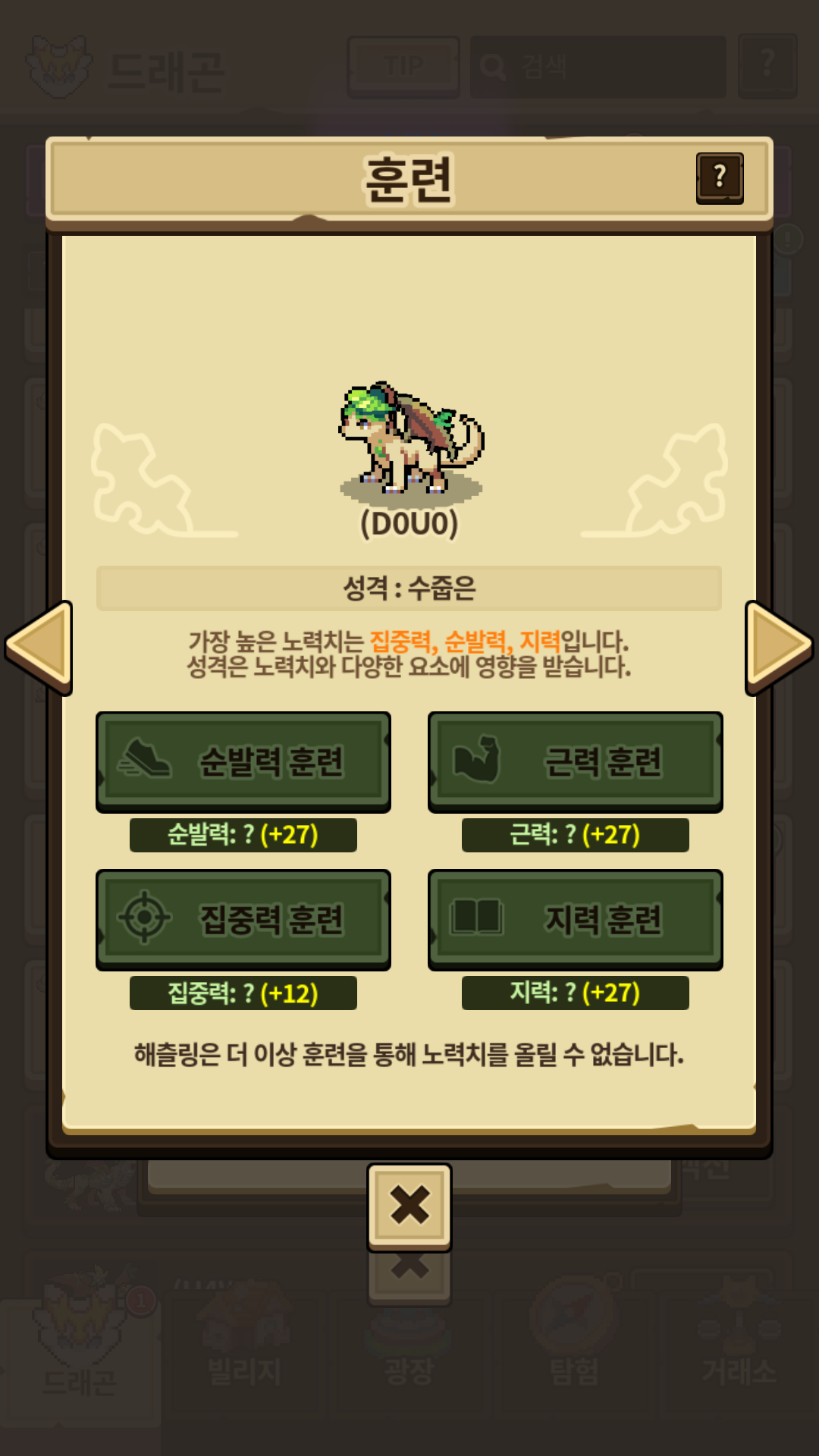 사실, 시간이 촉박해서 부화장에서 꺼내놓기도 해서 행복도가 떨어진 적도 있고, 훈련 실패도 1번 했던 걸로 기억하거든요.