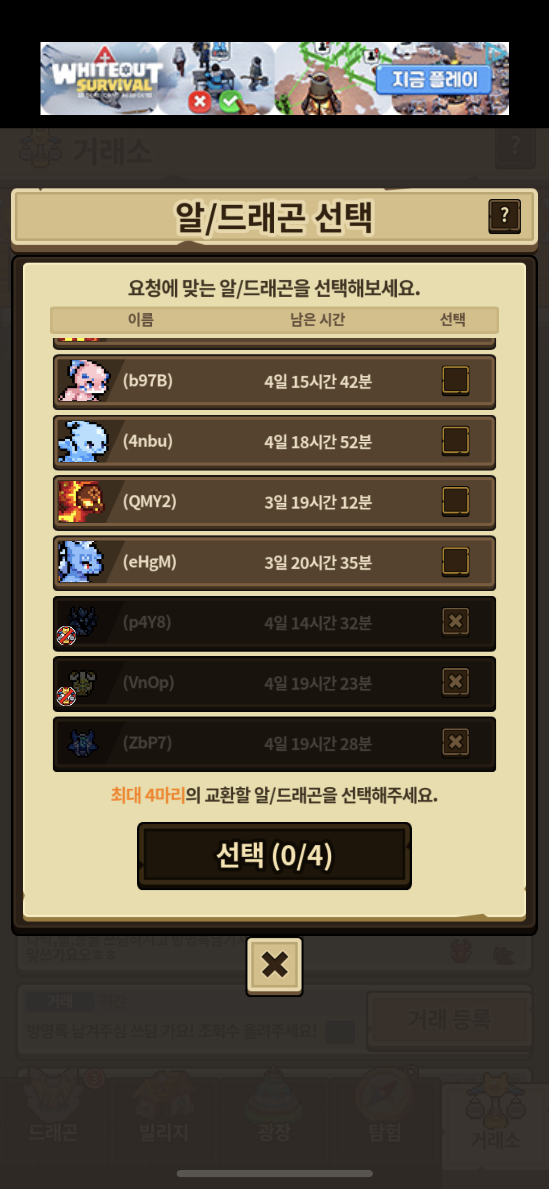 말로단 순혈 2세대 만들었는데 왜 거래가 안되죠?? 비활성화 되어있네요