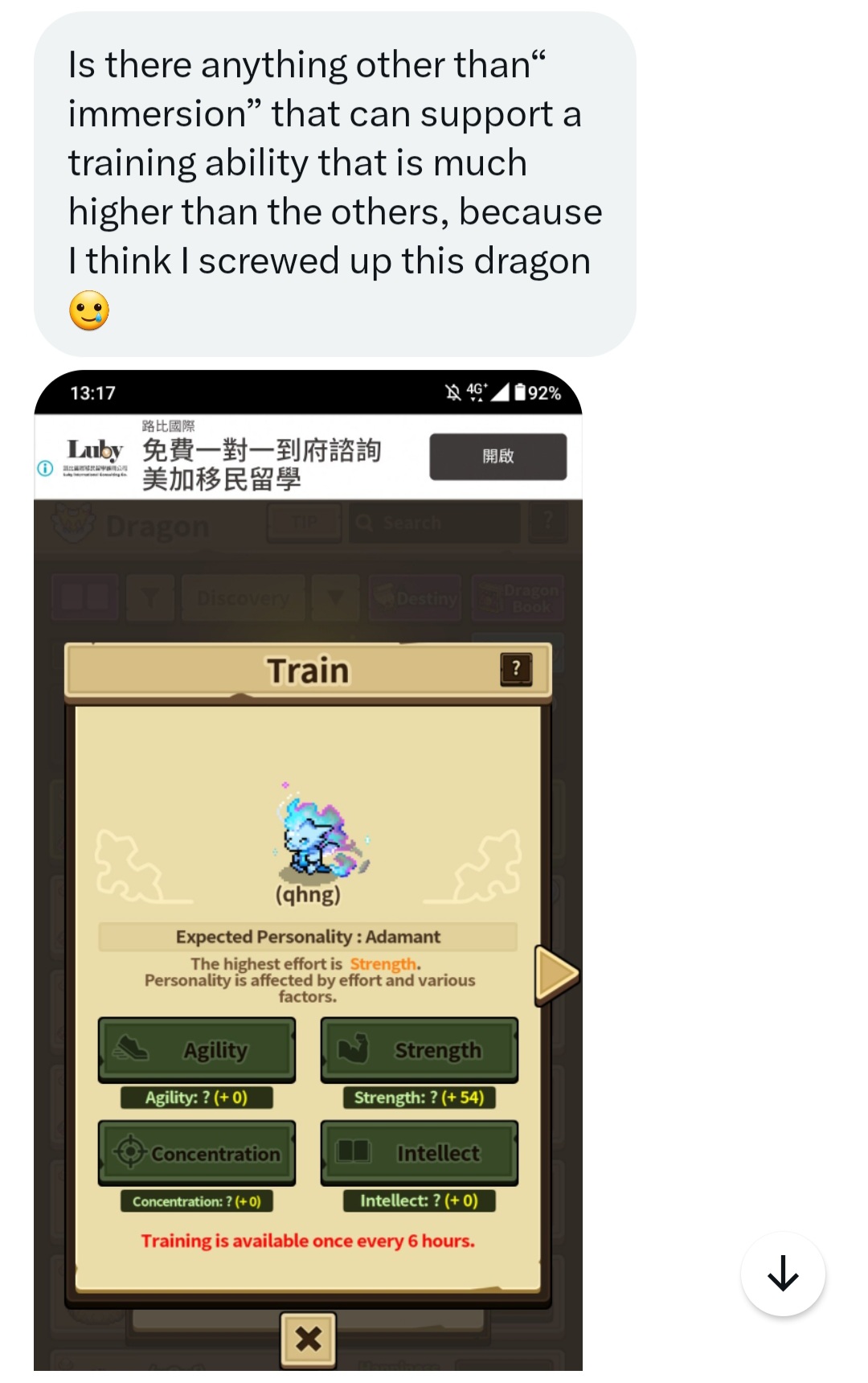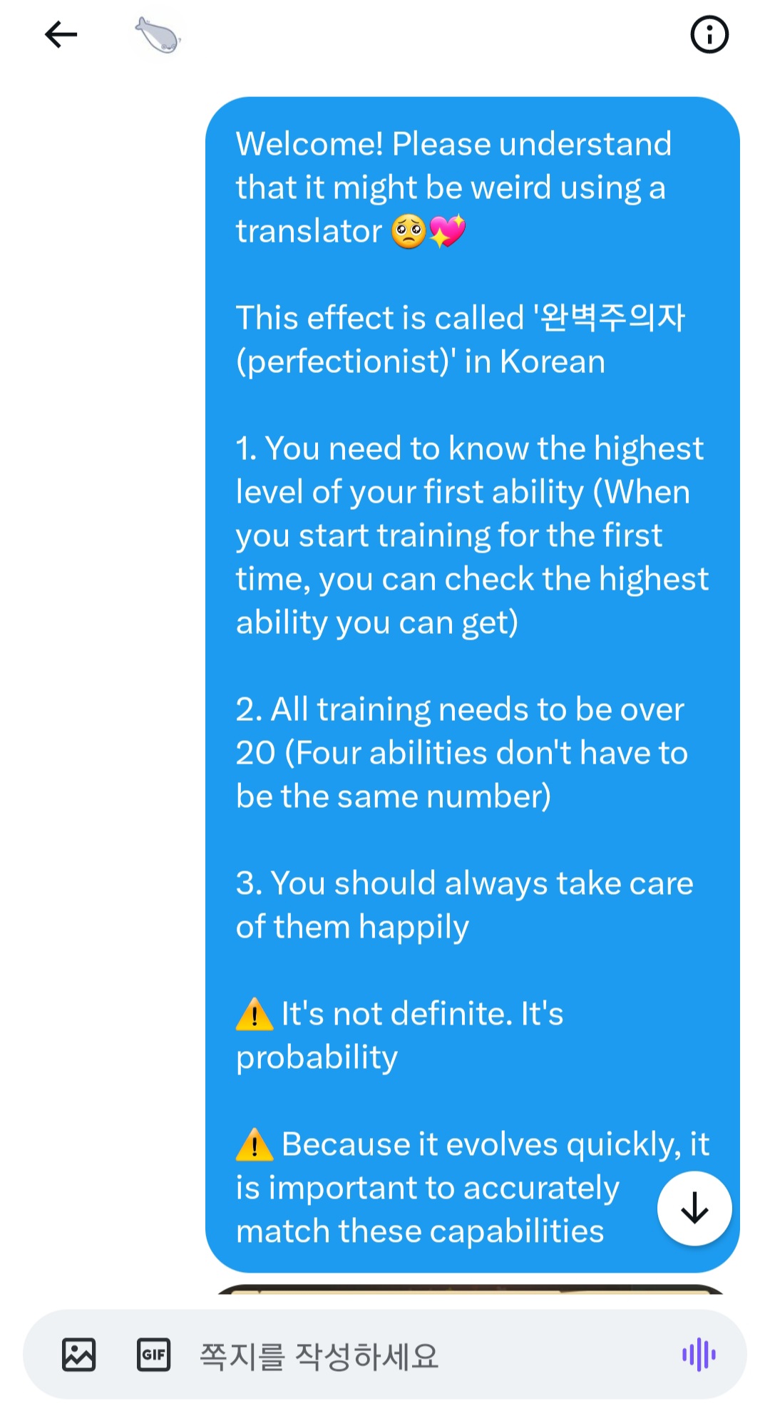 아직 해외에서는 정보가 많이 없어가지구 그런듯 완주자랑 유능이랑 몰입 대충 설명해줬어요 .. 자기 말로는 몰입하고 싶었는데 실패했다고 그러네요 완주작 해놓은 드래곤도 선물로 주기로 했어요 귀여운 친구 사겼당 ~~