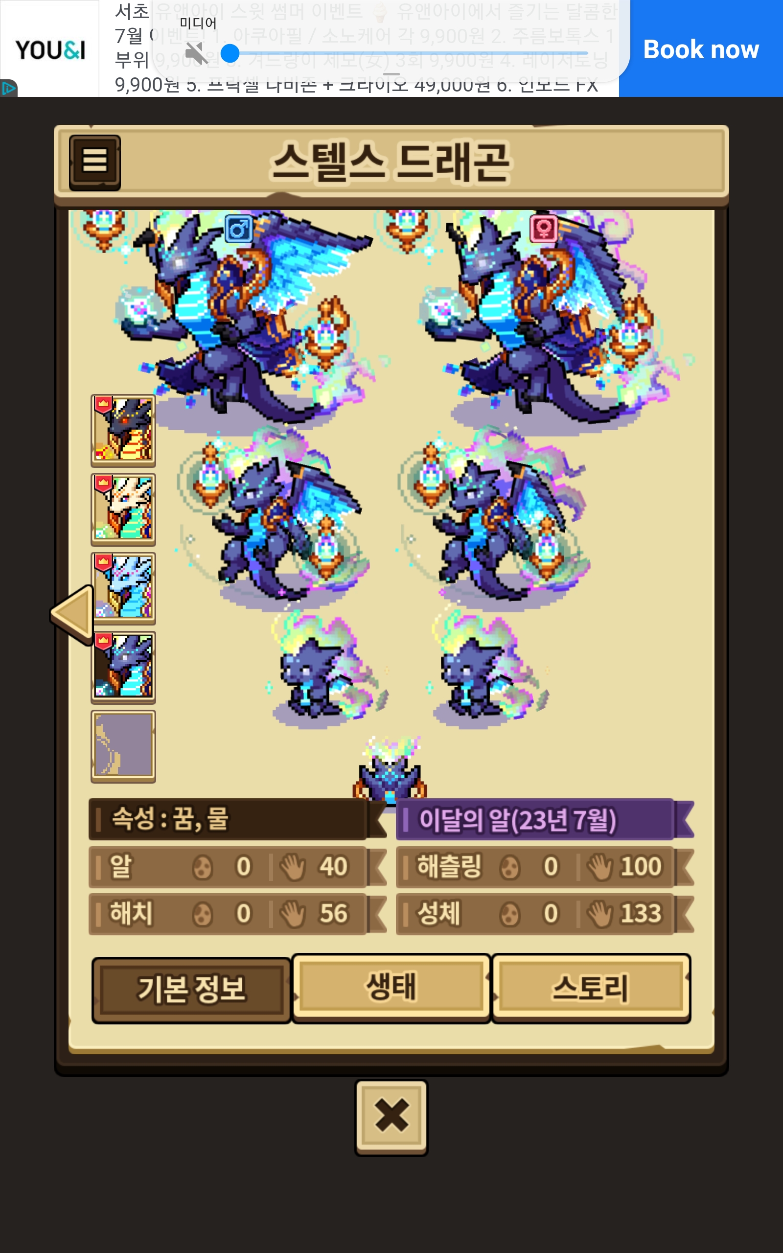 아직 교배종 빼고 다 도감작 했습니다. 스텔스 단 1마리도 없어서 뱃지는 못받겠네요..