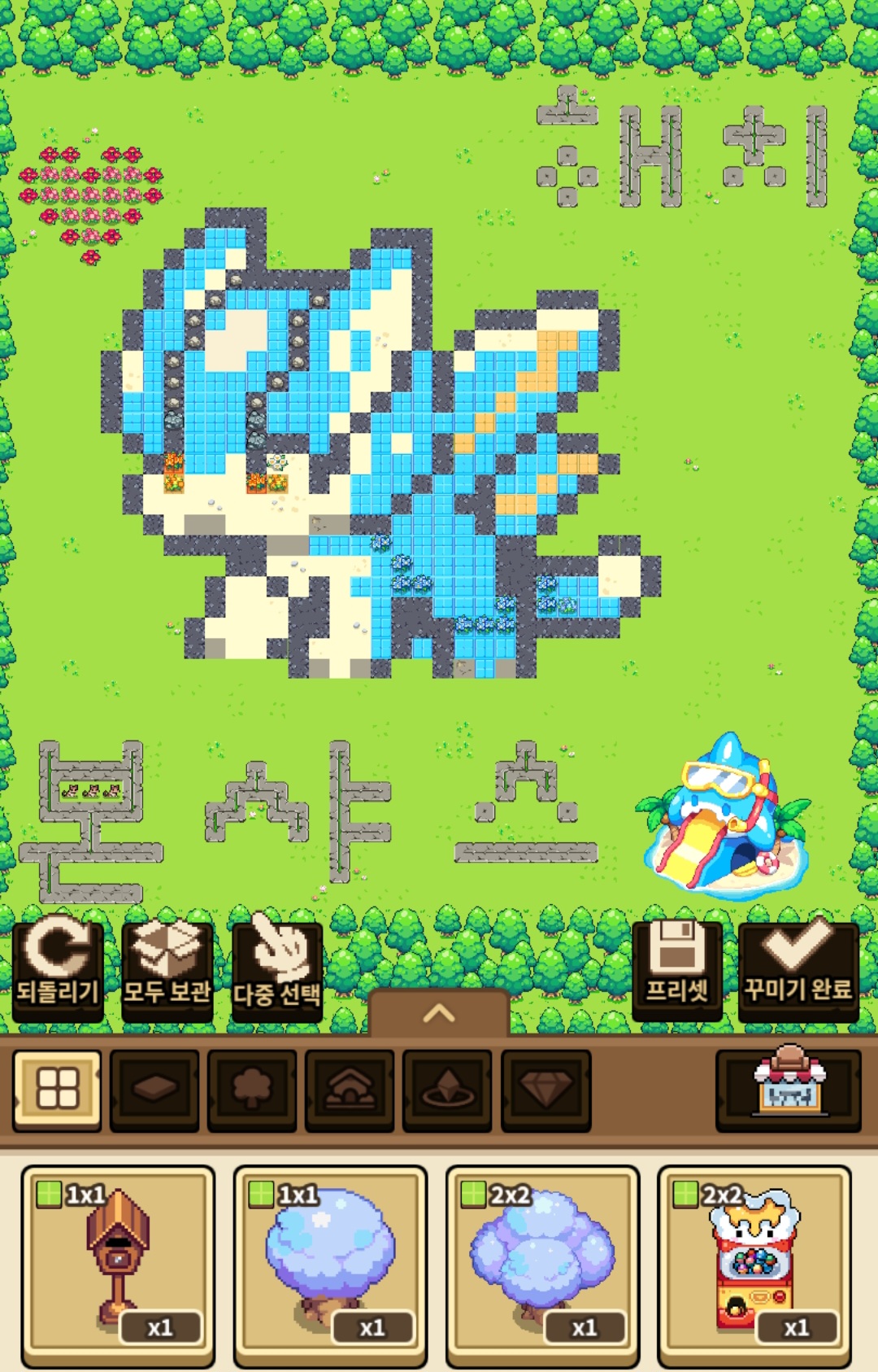 할 일 없을 때 빌리지 도트 꾸미는 재미가 있네요. 근데 타일값이 비싸서 일단 돈부터 모으는 중..