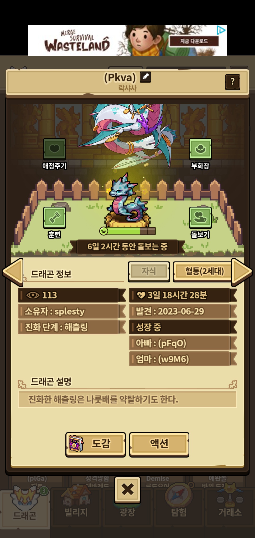 거래로 얻은 락샤샤가 절묘한 타이밍에 성체로 커줘서 방빼준 덕에 스쿠룸 데려오기 성공했습니다