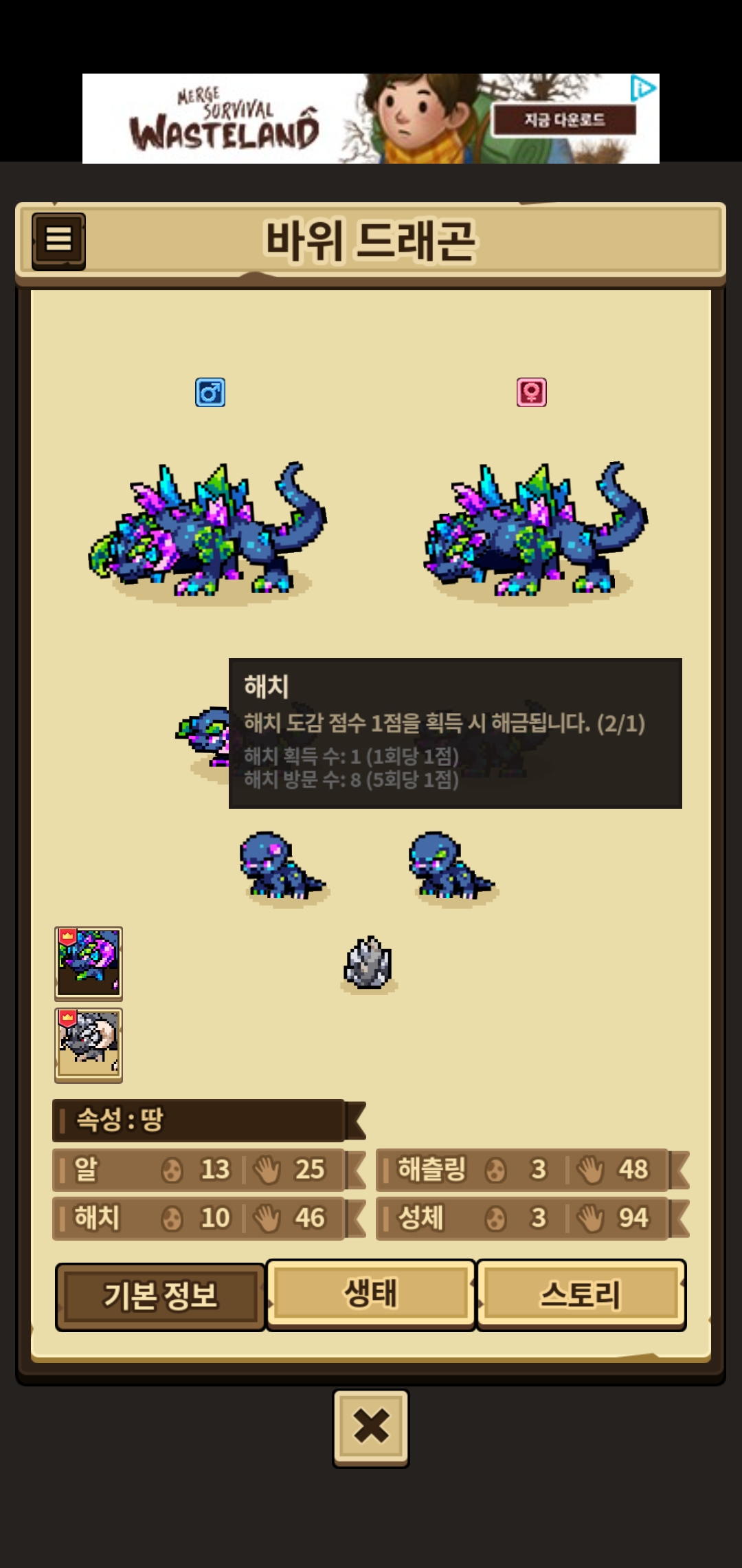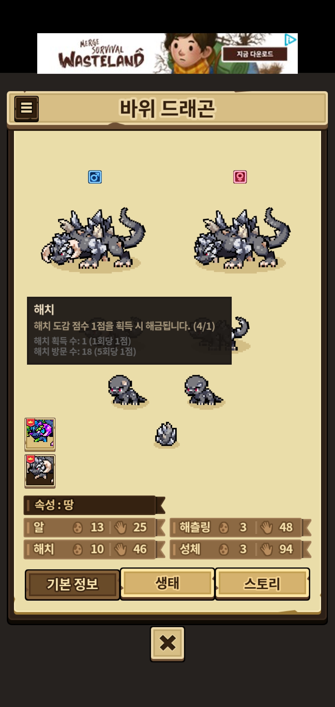 고작 바위 수컷 얻겠다고 생고생 다 했습니다 ㅋㅋㅋ