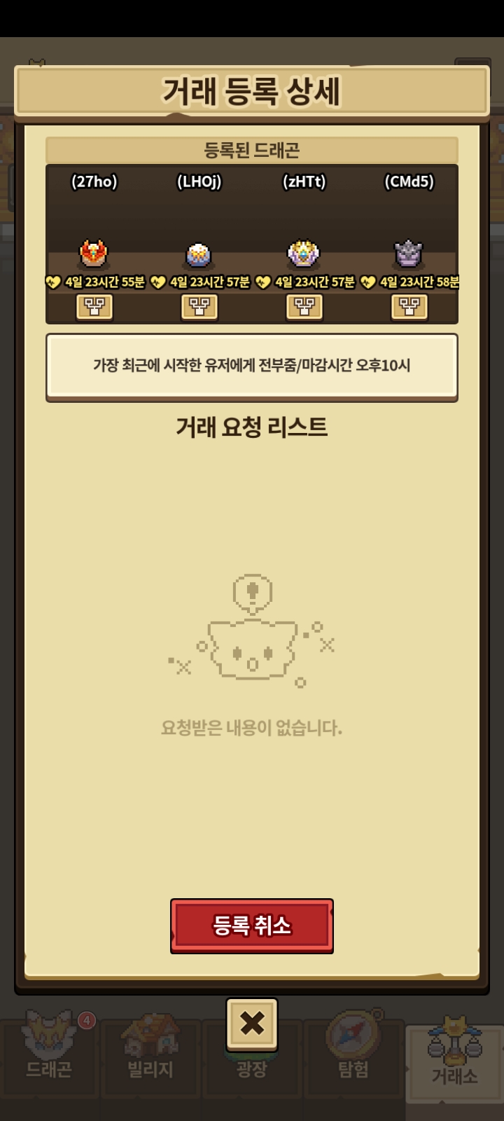 +양도하려는 해당유저의 칸수가 부족할 경우 , 해당유저 다음으로 최근 시작한 유저 혹은 성체 드래곤 수가 낮은 유저에게 줌