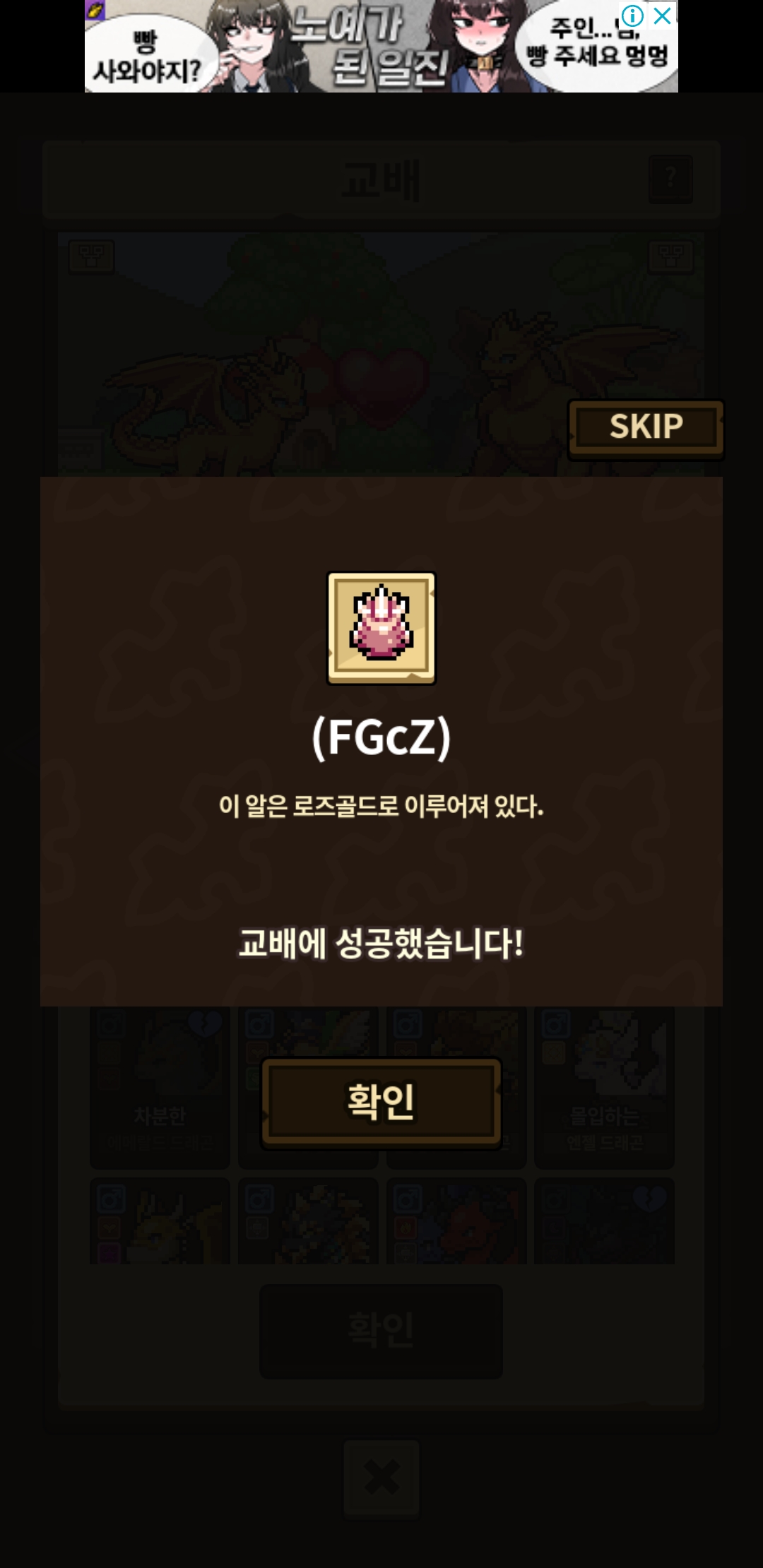 그래도 골드끼리 교배하는게 15프로로 교배종 확률이 높긴 하네여. 스샷은 깜빡해가지고… 확률 스샷은 없지만…