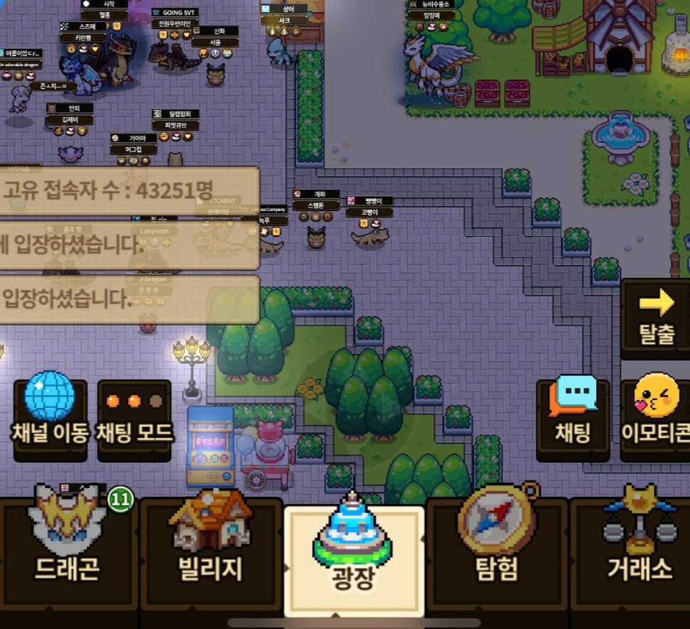- - 광장 빌리지 광장으로 이동 시 광장 유저, 건물등이 느리게 나타남.