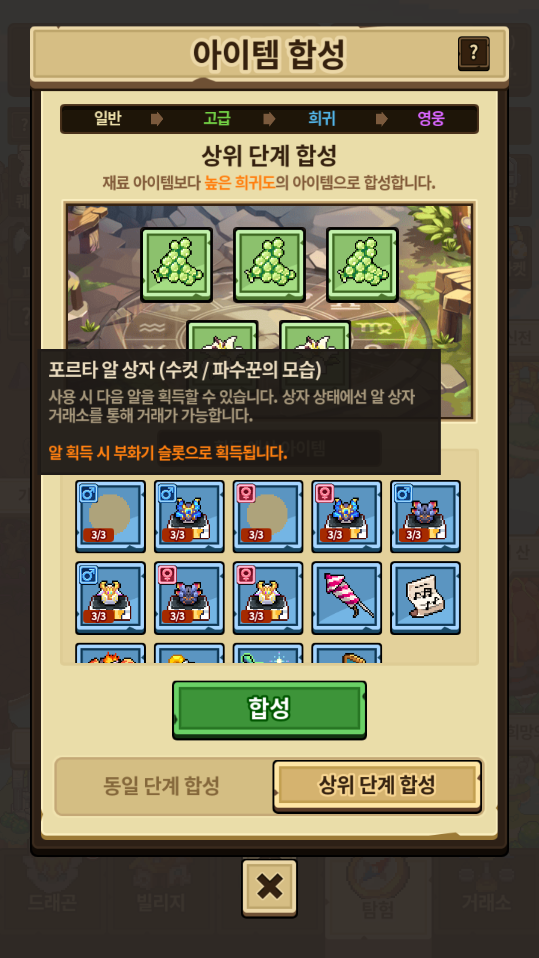 성별, 모습, 품종을 확인할 수 있는 알 상자가 획득 가능한 것 같고, 아이템 설명 그대로, 사용 시 알로 지급되고, 상자로는 거래소에서 거래되는 것 같네요.