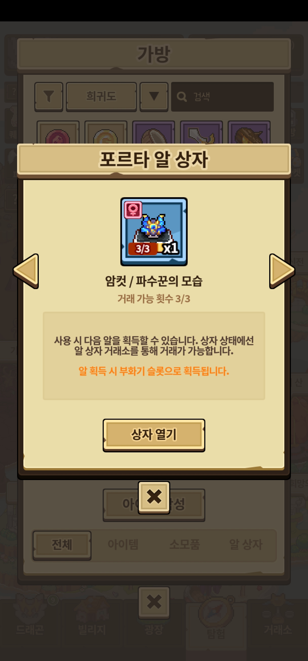 그리고 가끔 보물상자 하나에서 알조각 2개가 나오는 경우도 있더라구요!!! 저는 2개가 2번떠서 58개의 보물상자 까서 60개의 알조각을 얻었습니다.