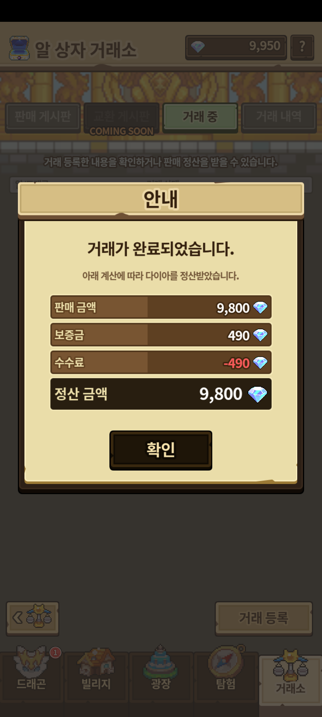 거래완료창과 함께 그 슬픈감정들이 모두 사라졌다