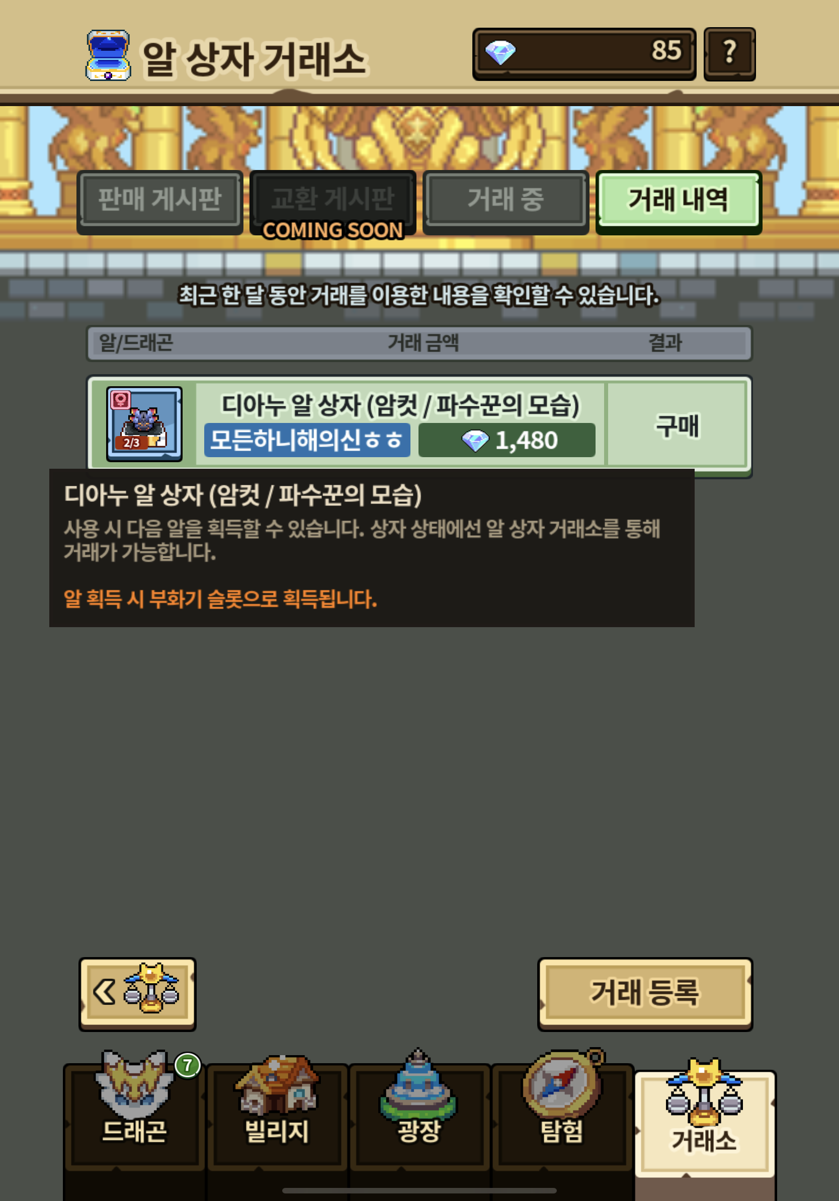 1600 다이아인가 있었어서 1480으로 구매해서 다이아 소모 됐는데 정작 알은 나한테 안옴…..