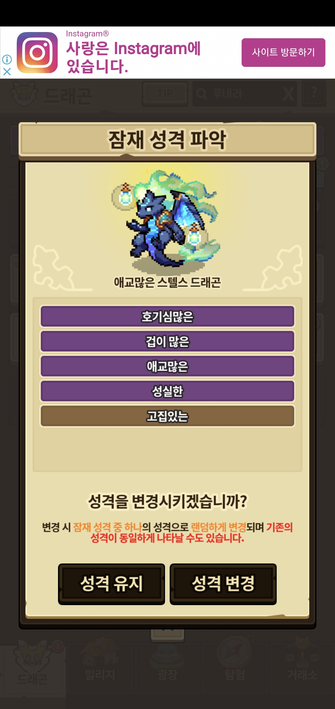 (호기심, 겁쟁이, 성실을 원했음)