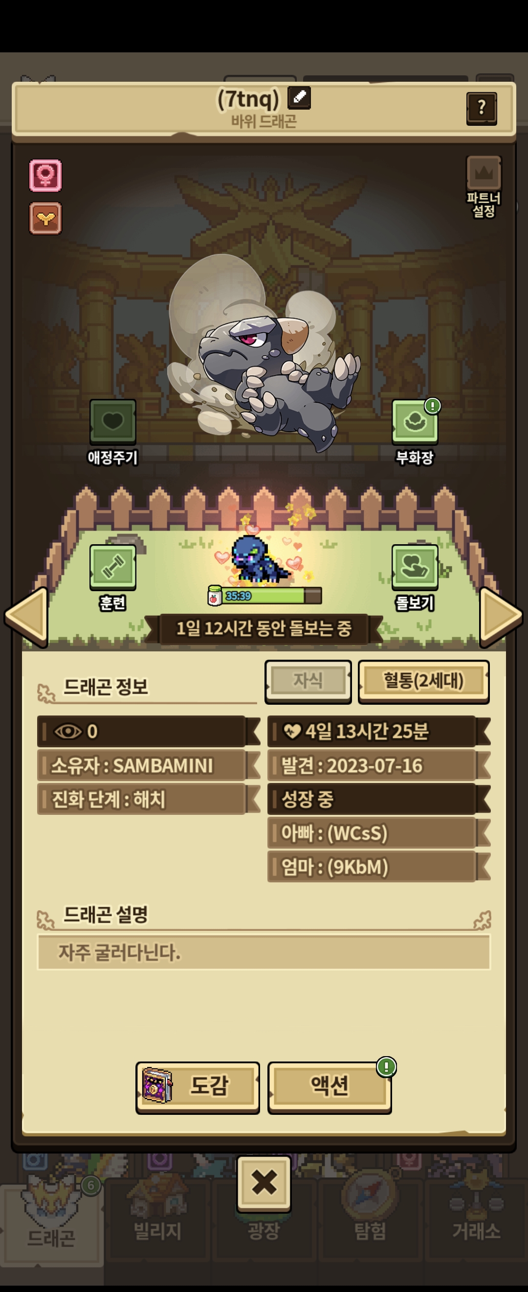 광석 먹은 바위 드래곤 해치야 얼른 성체가 되려무나~
